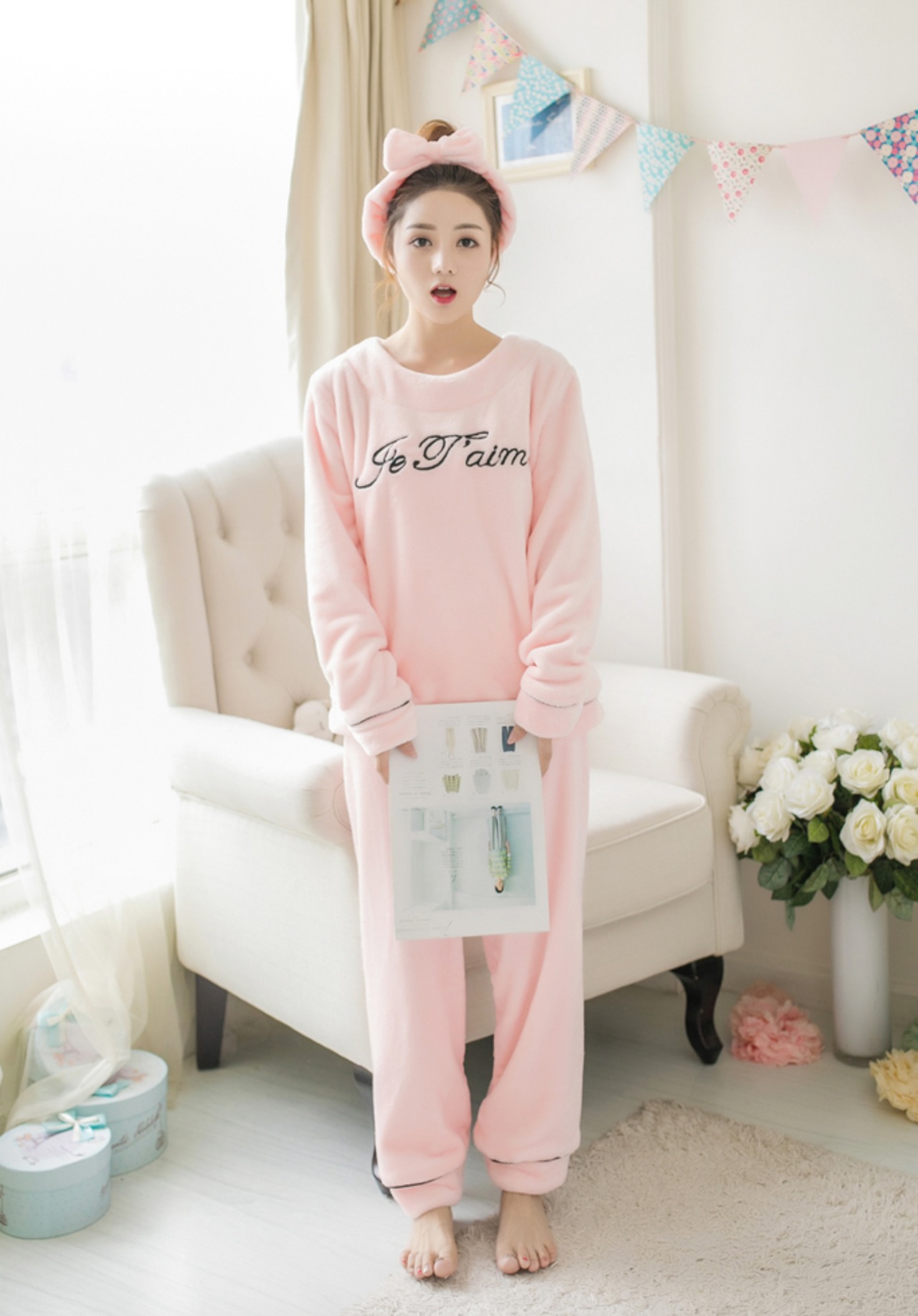 ルームウェア パジャマ 上下セット 部屋着 寝巻き ナイトウェア 着る毛布 長袖 ラウンドネック プルオーバー 厚手 パイピング ロゴ入り かわいい 大人可愛い シンプル カジュアル 上品 おしゃれ 大人女子 ラブリー キュート ガーリー 抜け感 スイート ふんわり ふわもこ もこもこ 冬 10代 20代 30代 40代 レディース お泊まり 休日 普段使い デイリー 楽ちん リラックス モテ 王道 ライトピンク