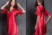ルームウェア パジャマ 部屋着 寝巻き ナイトウェア ネグリジェ 五分袖 Vネック ワンピースタイプ ショート丈 レース 無地 きれいめ 上品 おしゃれ かっこいい 大人女子 クール セクシー エレガント ラグジュアリー 抜け感 シック 春 夏 10代 20代 30代 40代 50代 レディース お泊まり 休日 旅行 おうちデート ホカンス ホテル 記念日 普段使い デイリー リラックス モテ 美脚 脚長 ホワイト レッド ピンク