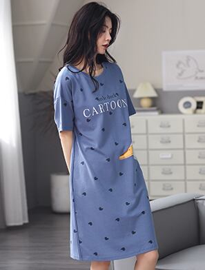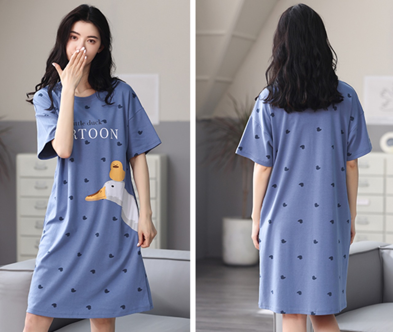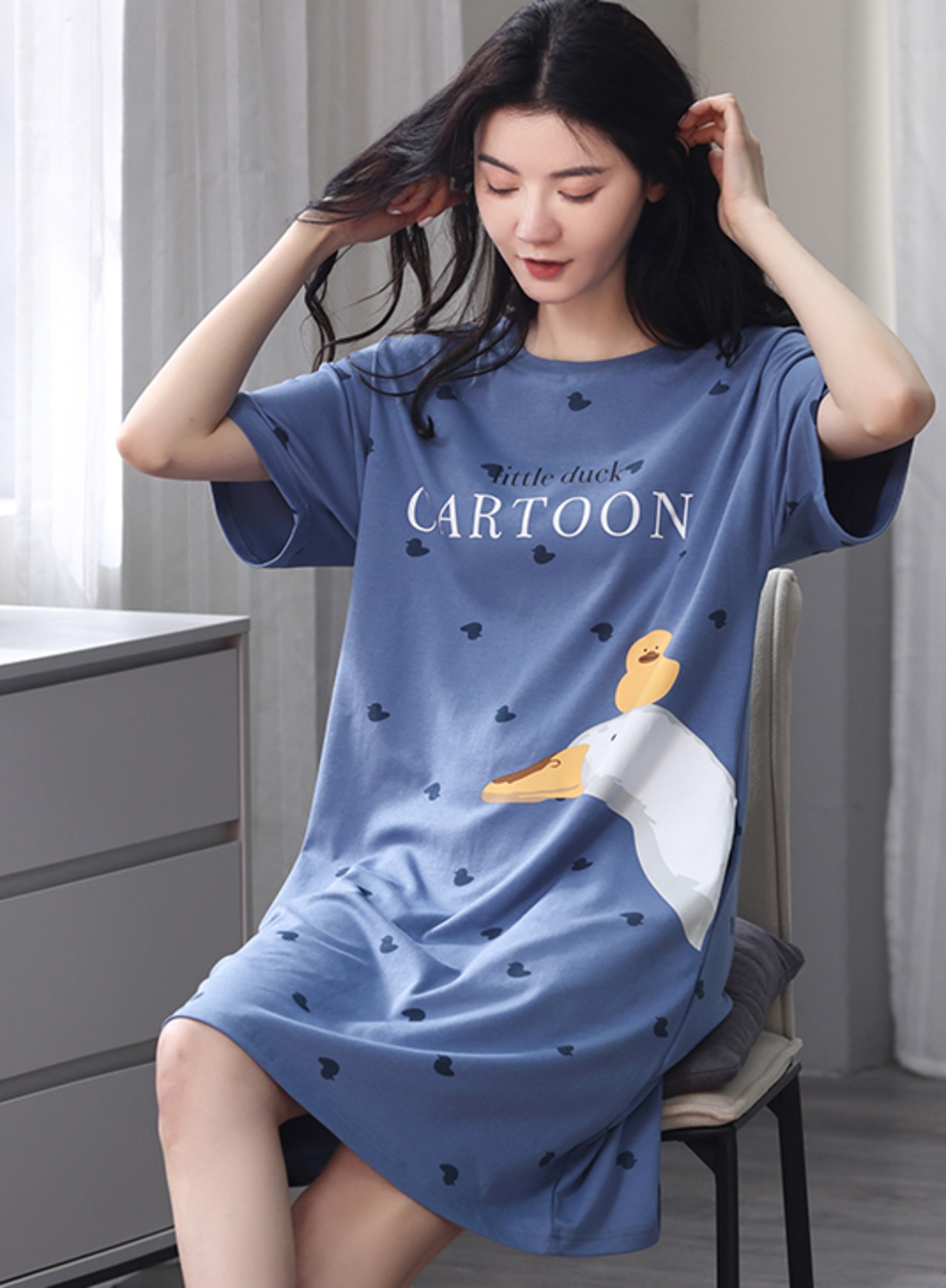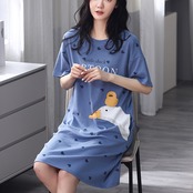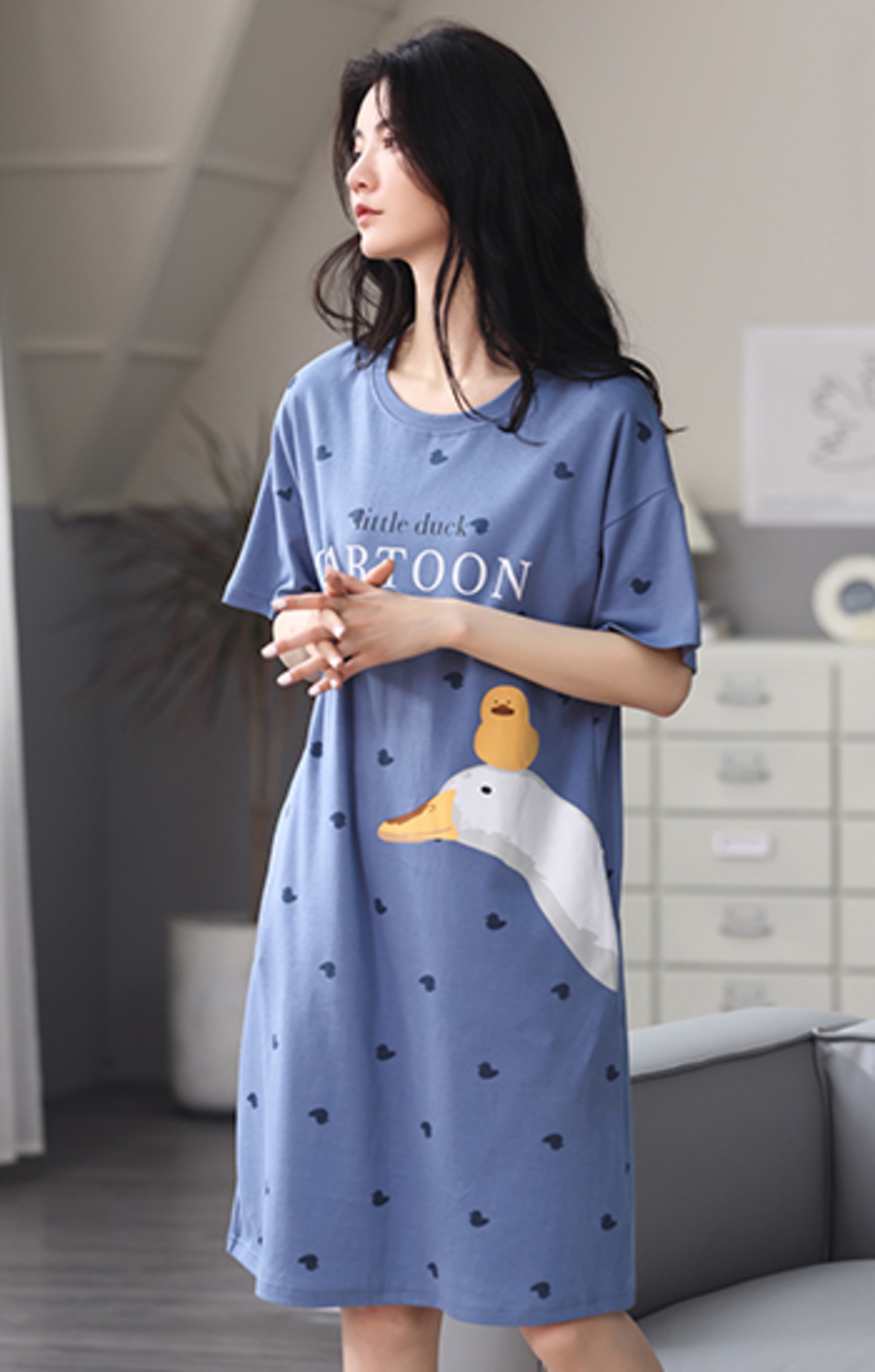 ルームウェア パジャマ 部屋着 寝巻き ナイトウェア 半袖 ラウンドネック ワンピースタイプ ミドル丈 レース 大きめサイズ 柄 ドット柄 アヒル かわいい 大人可愛い きれいめ カジュアル 大人女子 ラフ ラブリー キュート 抜け感 夏 10代 20代 30代 レディース お泊まり 休日 普段使い デイリー 楽ちん リラックス おもしろ ブルー