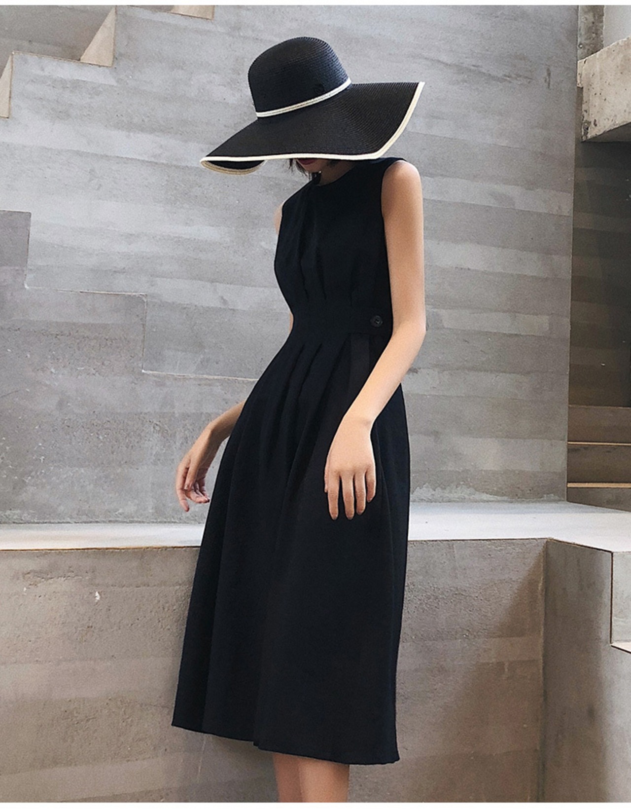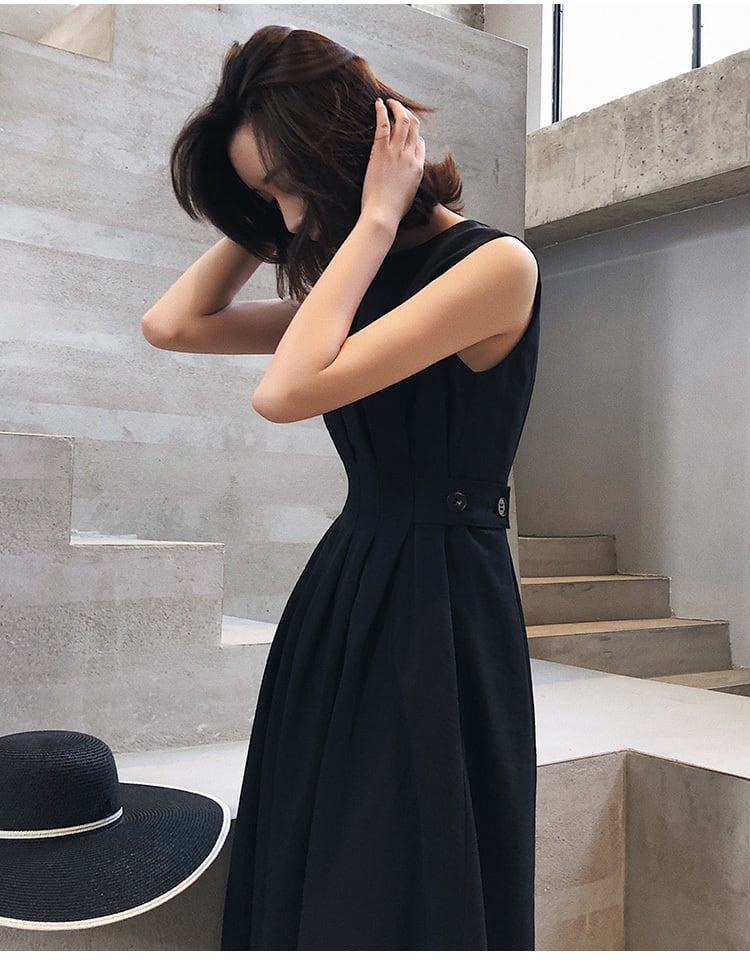 着回し力抜群なシンプルなノースリーブワンピースです。