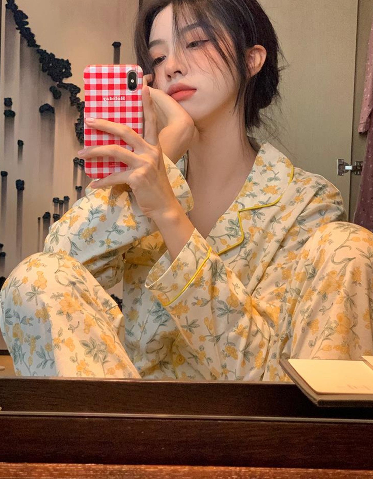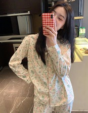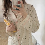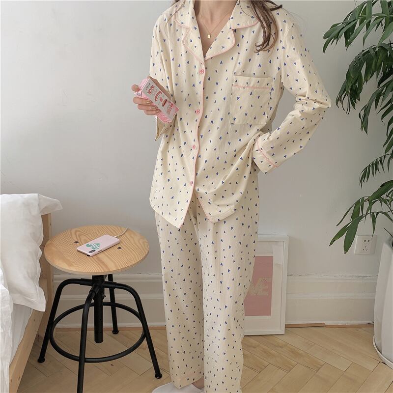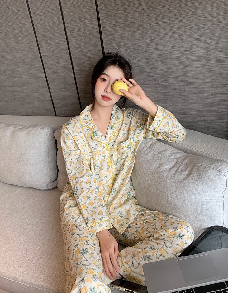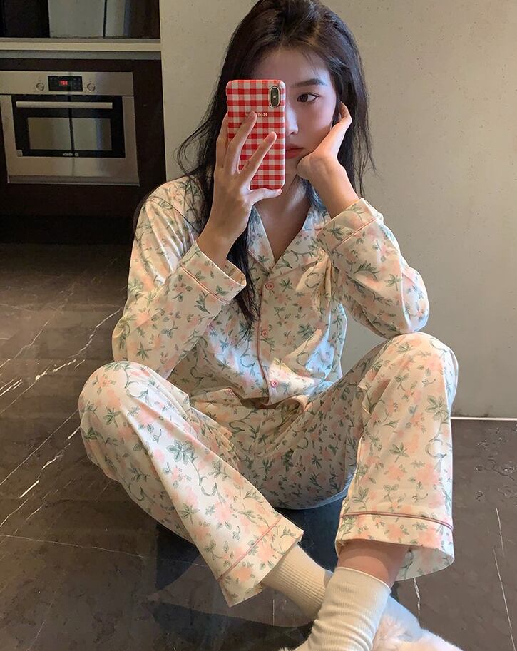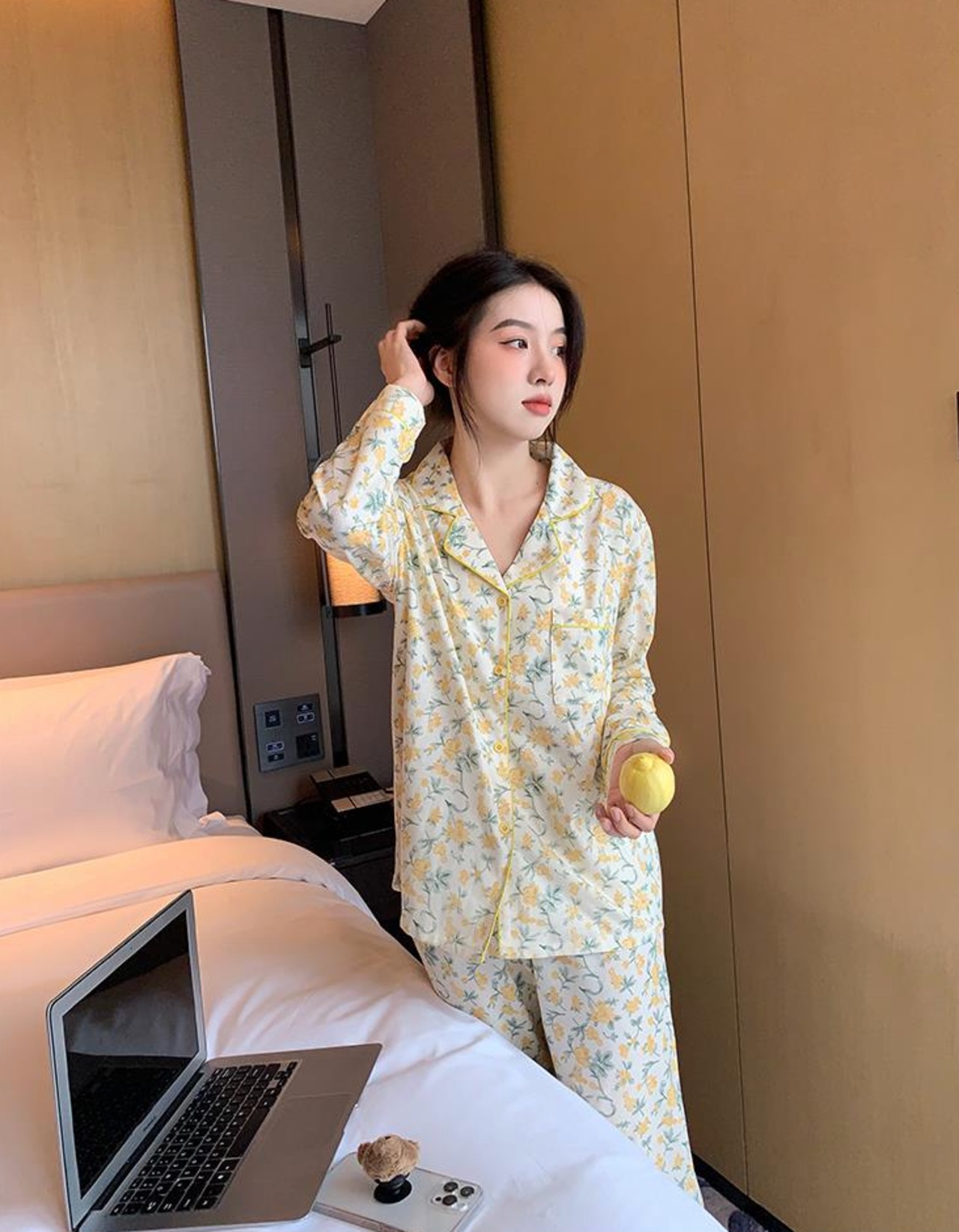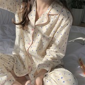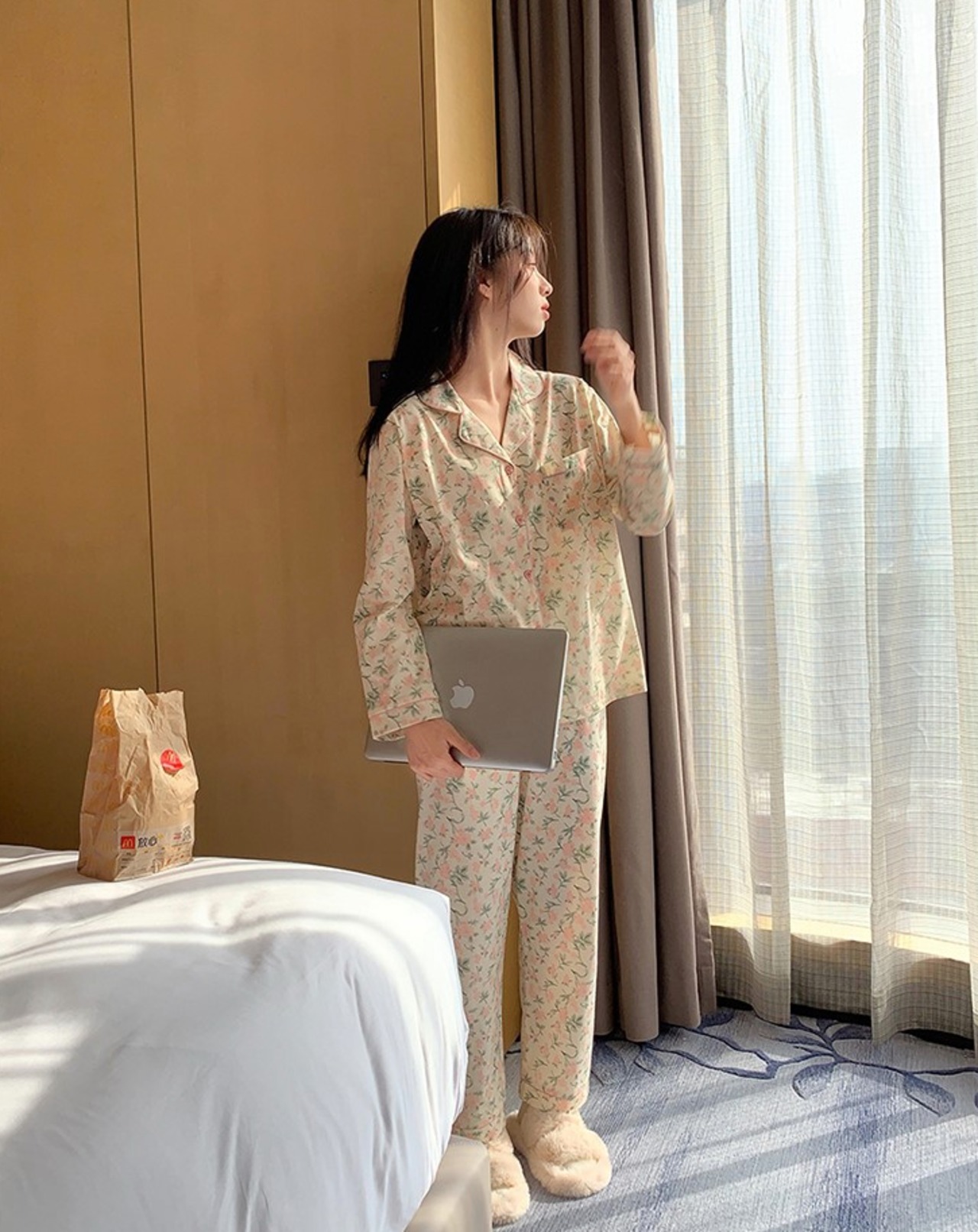 セットアップ ルームウェア パジャマ 寝巻き ナイトウェア ロング ロング丈 袖あり 長袖 Vネック 前開き 2点セット おしゃれ お洒落 ラフ ラブリー キュート ガーリー 柄 花柄 小花柄 フラワー ドット柄 水玉 春 夏 秋 冬 オールシーズン シーズンレス 2022 2023 10代 20代 30代 40代 レディース 女性用 ママ マタニティ キッズ 女の子 お泊まり 休日 M L XL 2XL 青 ブルー イエロー ピンク パステルカラー
