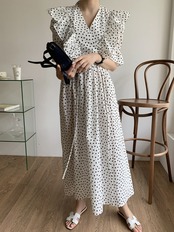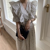 ドット柄とたっぷりのフリルがより一層可愛さを引き立てます。