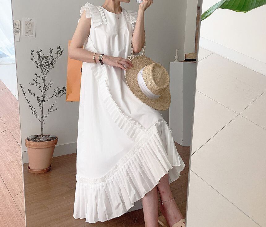 たっぷりのフリルが女性らしさを演出するワンピース。