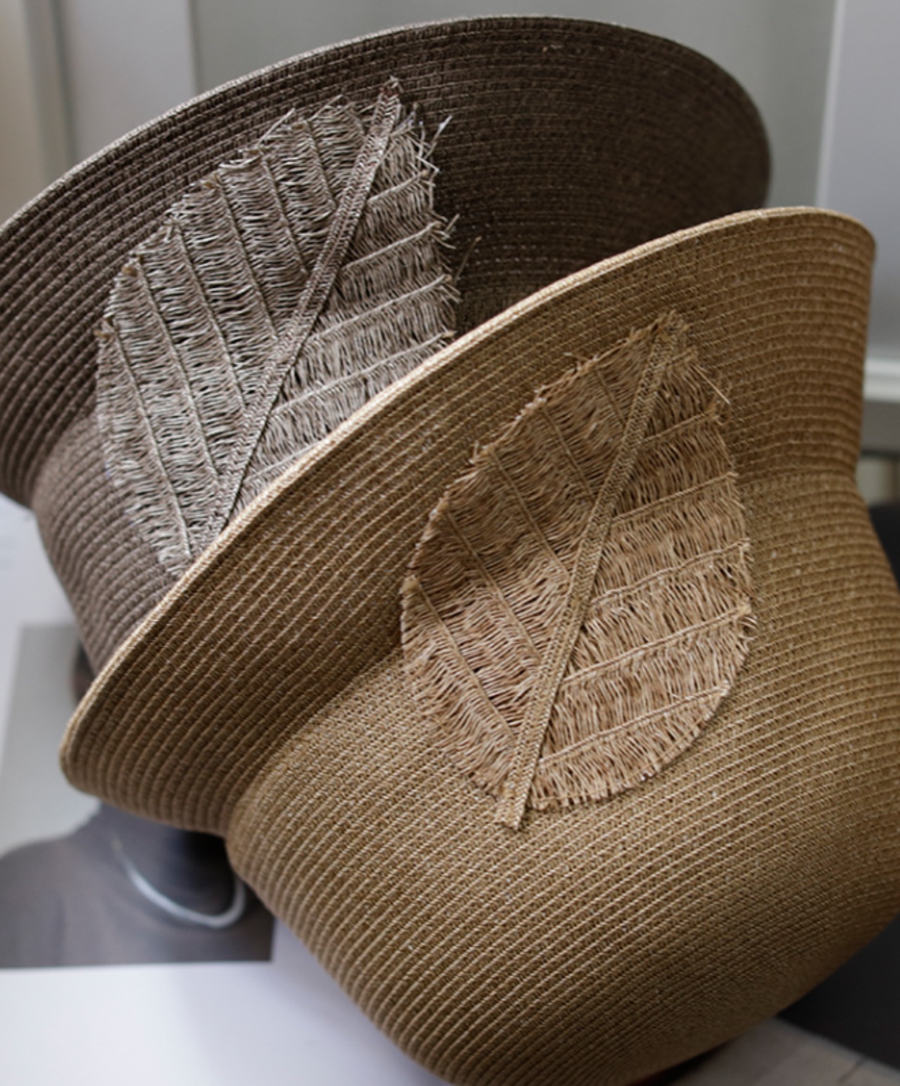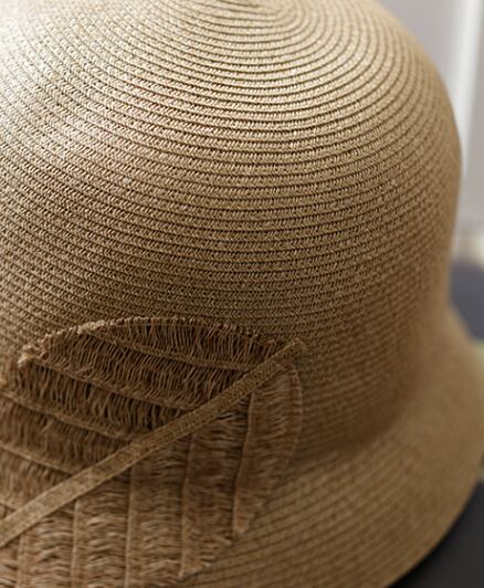 大きな葉っぱのデザインがおしゃれな麦わら帽子です。