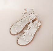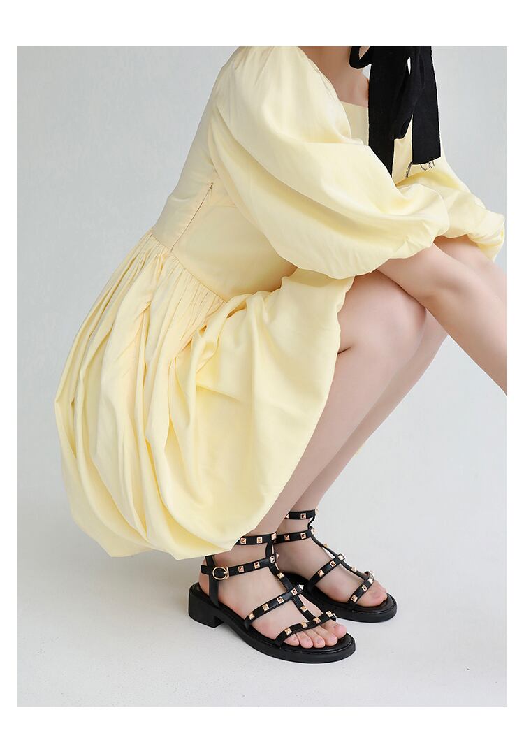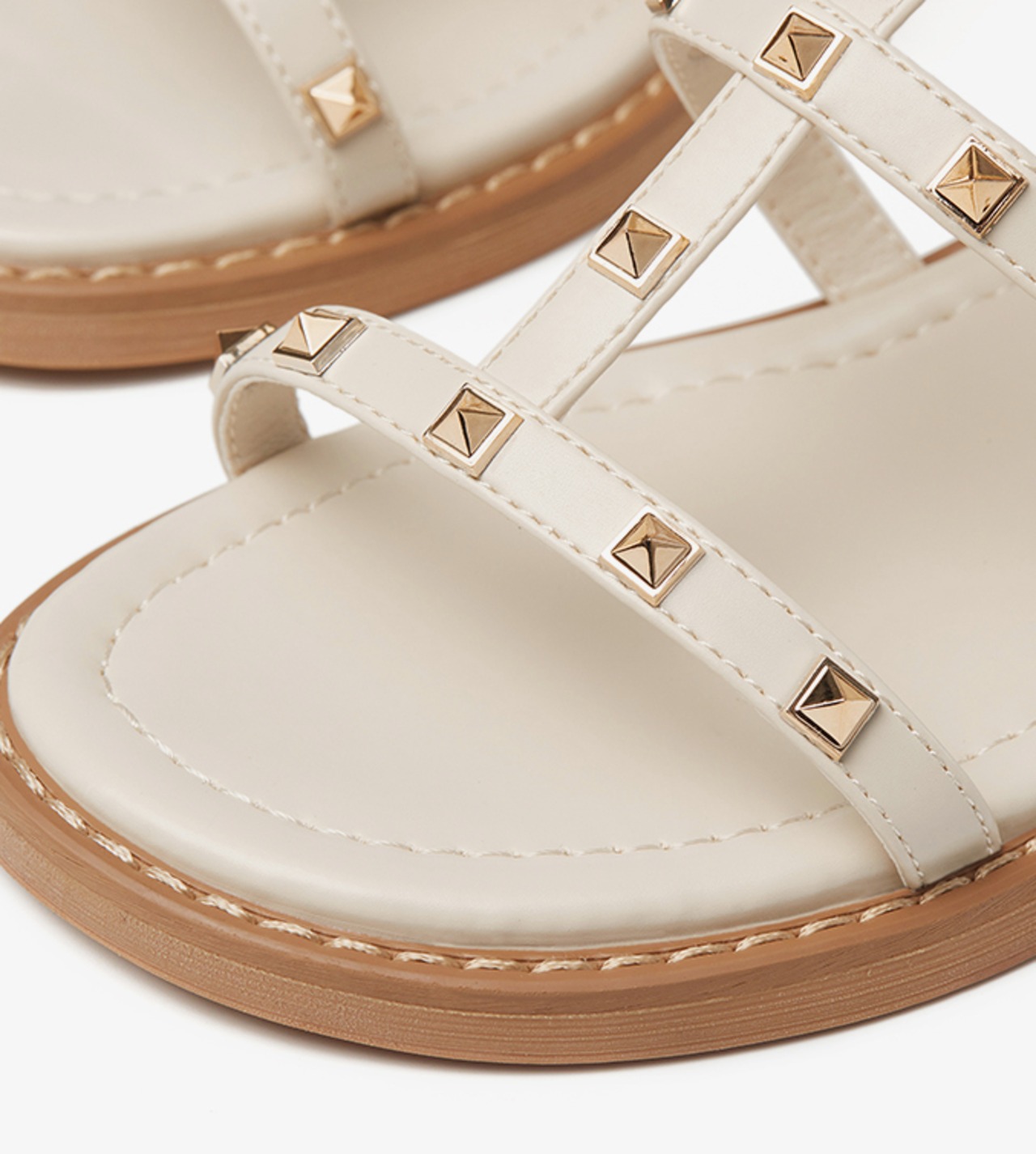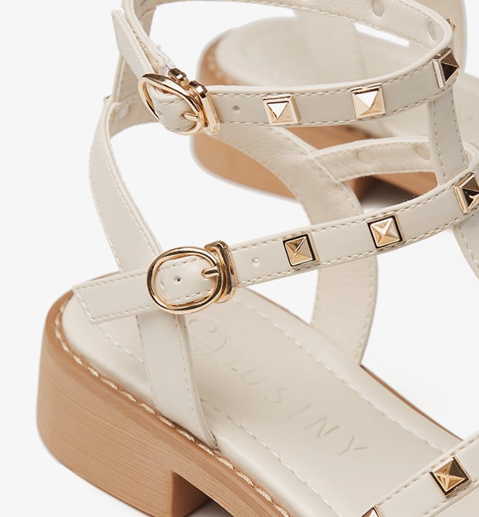 スタッズがポイントのローヒールサンダルです。