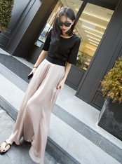 コンパクトなトップスを合わせれば、スタイルアップ効果も抜群です。