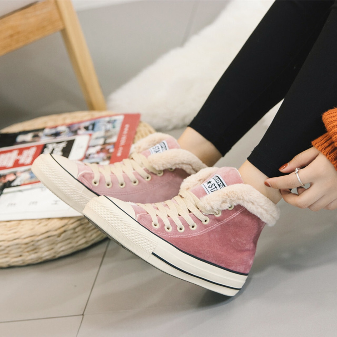 ミッドカット シューズ 靴 くつ クツ スニーカー レディースシューズ フラット ラウンドトゥ もこもこ モコモコ ふわふわ 痛くない 歩きやすい 疲れにくい 裏ボア 防寒 暖かい あったか 厚手 かわいい シンプル カジュアル おしゃれ お洒落 ラブリー キュート ガーリー メンズライク マニッシュ ボーイッシュ 個性的 モダン 無地 ワンポイント 秋 冬 10代 20代 30代 レディース 女性用 ママ デート お出かけ デイリー 普段使い 25.0cm 25.5cm 26.0cm 大きいサイズ