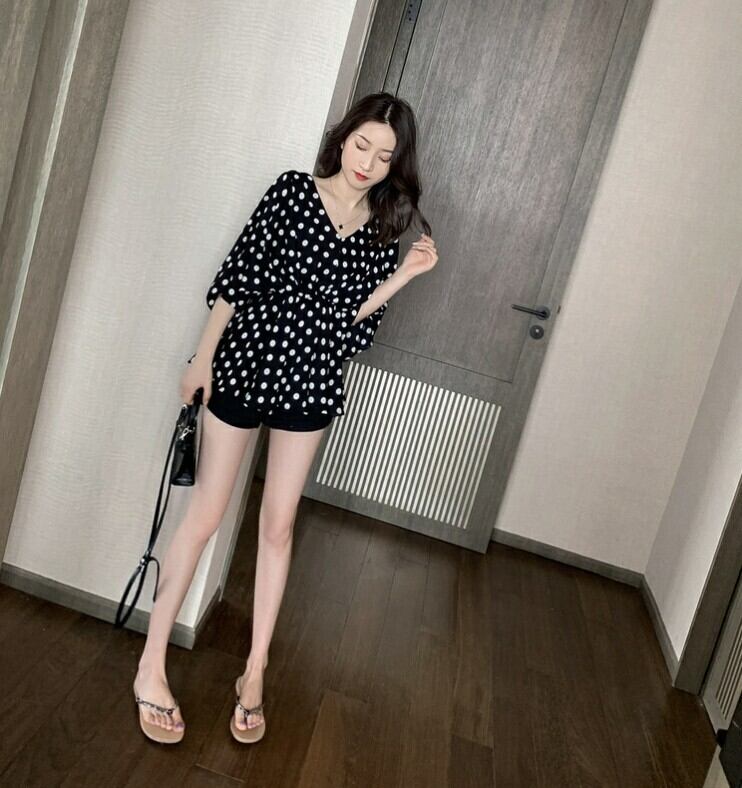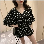 トップス ブラウス 袖あり 5分袖 五分袖 ボリューム袖 Vネック フレア ペプラム ウエストマーク 薄手 大人可愛い きれいめ 大人 上品 おしゃれ お洒落 大人女子 こなれ感 ラフ ラブリー キュート ガーリー エレガント とろみ感 抜け感 ドット柄 水玉 春 夏 10代 20代 30代 40代 レディース 女性用 女の子 デート お出かけ 女子会 休日 リゾート 旅行 普段使い モテ 体系カバー M L XL 2XL 3XL 4XL 白 ホワイト 黒 ブラック