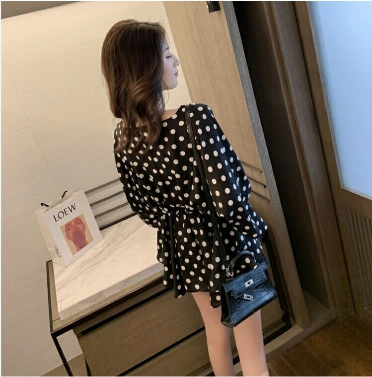 ふんわり華やかなドット柄ブラウスは、ボトムスを選ばない優れものです。