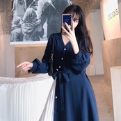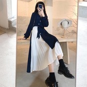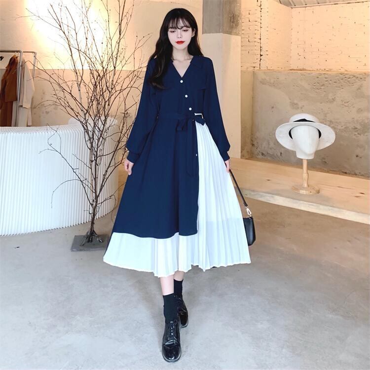ワンピース ロング丈 マキシ丈 袖あり 長袖 Vネック 襟付き セミフレア Aライン 切り替えデザイン ドッキング プリーツ ポリエステル かわいい 大人可愛い きれいめ シンプル 大人 上品 おしゃれ 大人可愛い 大人女子 こなれ感 ガーリー 主役級 存在感 無地 オールシーズン 20代 30代 レディース 女性用 OL 通勤 デート お出かけ 女子会 お泊まり 休日 パーティー イベント リゾート 旅行 ホテル レストラン モテ 美脚 S M L XL 2XL 3XL 4XL ビッグサイズ ゆったり