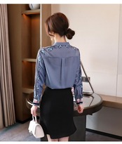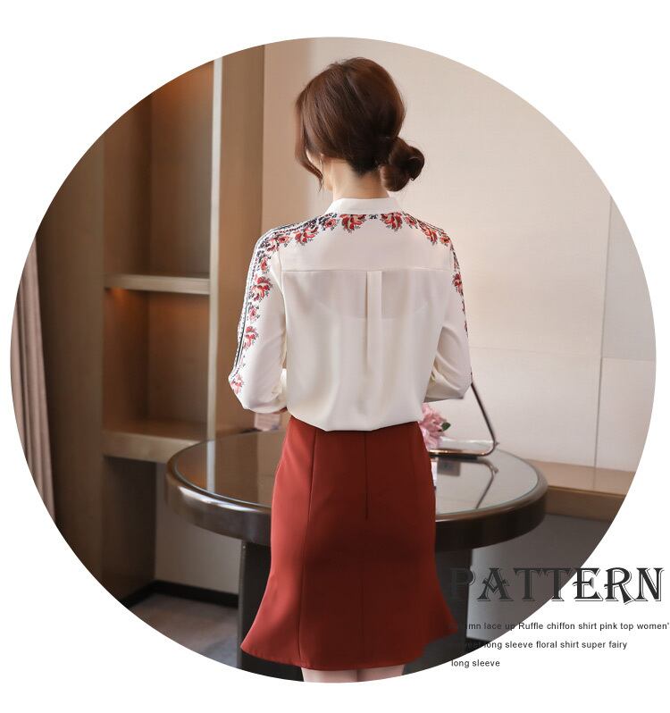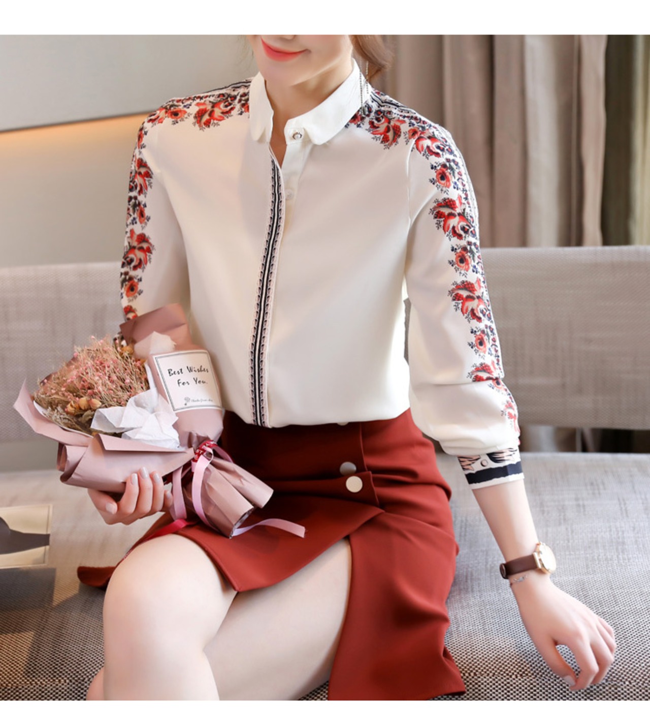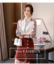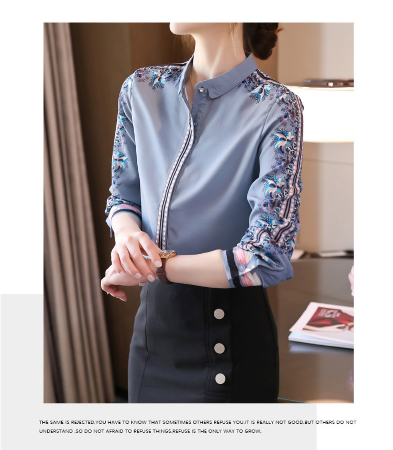 袖のプリントが色鮮やかでエレガントなブラウスです。