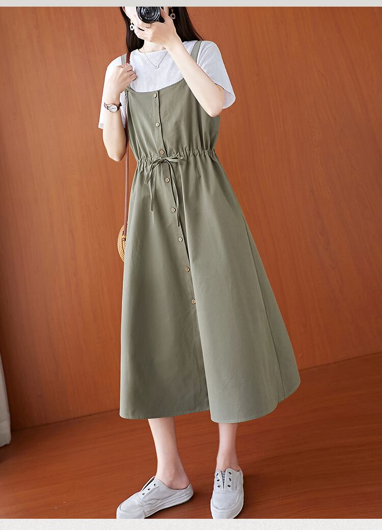 ワンピース ミモレ丈 ロング ノースリーブ Aライン 綿 かわいい 大人可愛い シンプル カジュアル 上品 おしゃれ 大人可愛い 大人女子 こなれ感 ラフ ガーリー 無地 オールシーズン 20代 30代 レディース 女性用 ママ マタニティ OL 通勤 デート お出かけ 公園デビュー 女子会 休日 アウトドア イベント リゾート 旅行 普段使い M L XL 2XL ゆったり グリーン