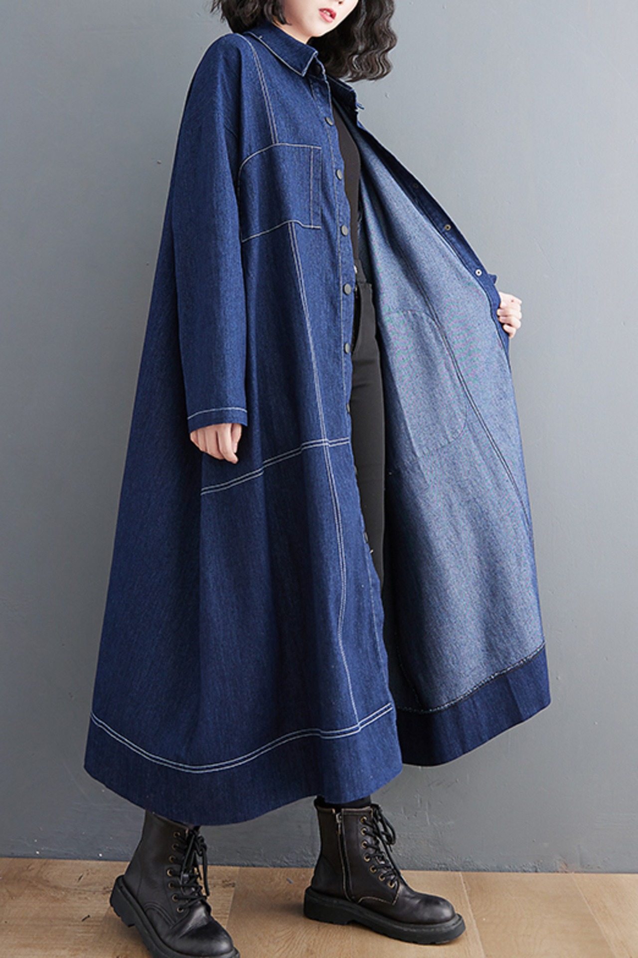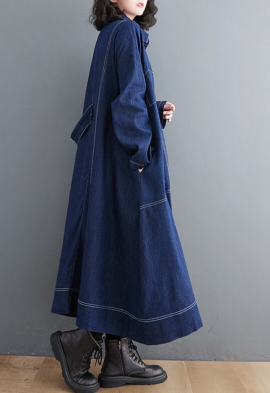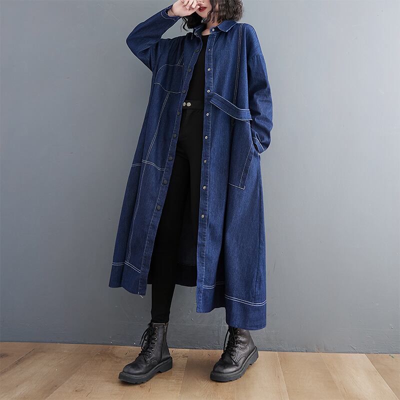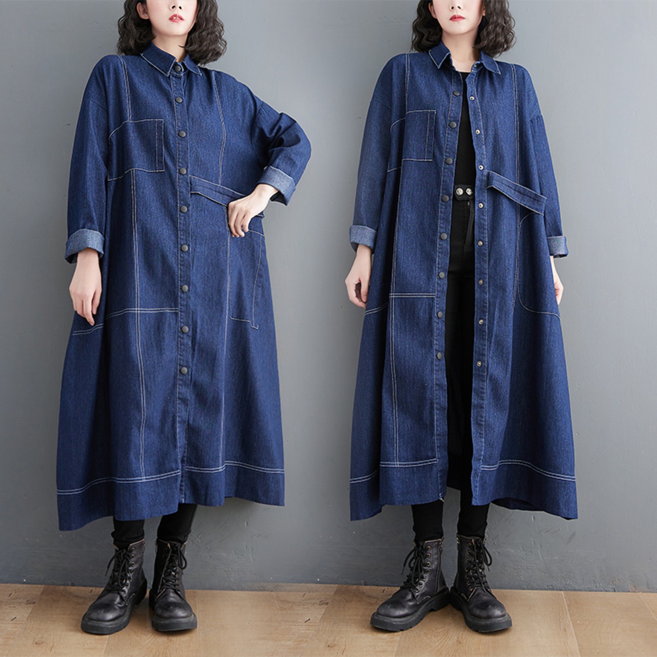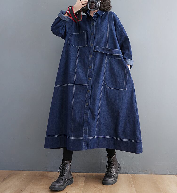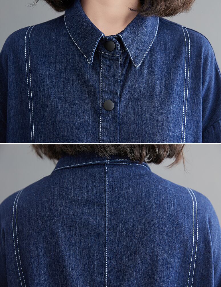 ワンピース ロング 長袖 襟付き Iライン 前開き 2way 綿 ブルーデニム かわいい 大人可愛い シンプル カジュアル おしゃれ 大人可愛い こなれ感 ラフ ルーズ 無地 オールシーズン 20代 30代 レディース お出かけ 公園デビュー 女子会 休日 リゾート 旅行 普段使い 楽ちん 体型カバー M L XL ゆったり ブルー