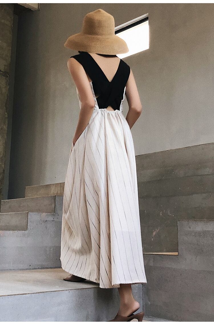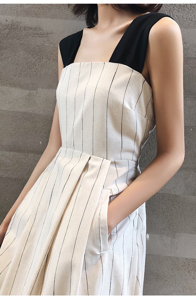 ワンピース ロング ロング丈 9分丈 アンクル丈 袖なし ノースリーブ スクエアネック ワイドショルダー 襟なし セミフレア Aライン 切り替えデザイン ウエストマーク ハイウエスト かわいい 大人可愛い シンプル 大人 おしゃれ お洒落 大人可愛い 大人女子 こなれ感 ラブリー セクシー 主役級 存在感 無地 ストライプ 春 夏 10代 20代 レディース 女性用 デート お出かけ 女子会 休日 パーティー イベント リゾート 旅行 海 プール コーデ スタイル モテ S M L XL 白 ホワイト
