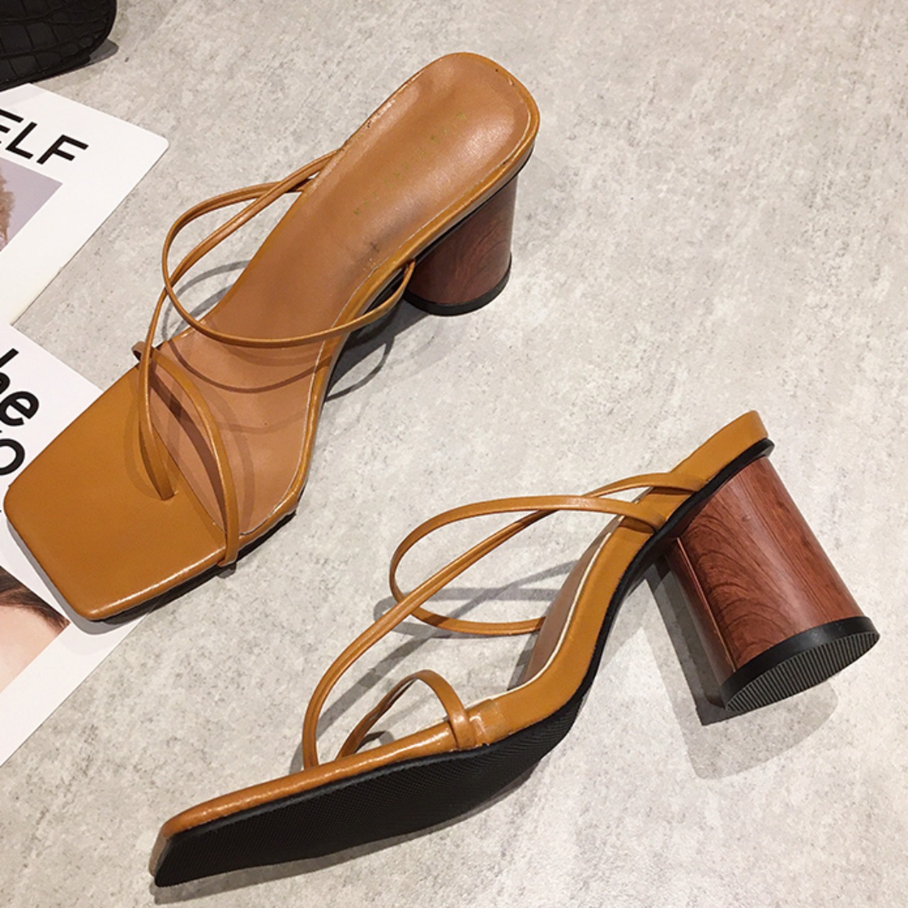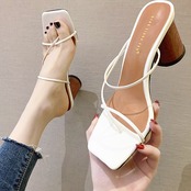 細いストラップが大人な印象のヒールサンダル。