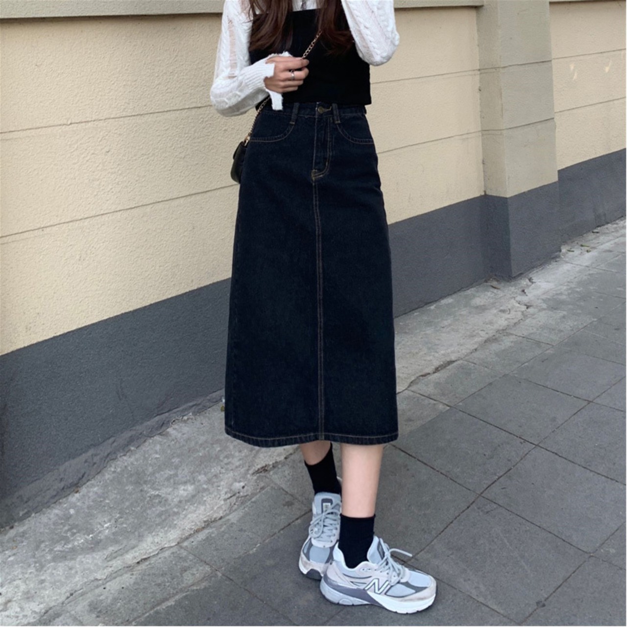 スカート ボトムス コクーンスカート デニムスカート 膝下 ミモレ ミモレ丈 スリム タイト 細身 ストレート デニム ブルーデニム 大人可愛い シンプル カジュアル 大人 おしゃれ お洒落 かっこいい メンズライク マニッシュ ボーイッシュ スポーティー 春 夏 秋 冬 2022 2023 10代 20代 30代 40代 50代 レディース 女性用 ママ キッズ 女の子 学生 通学 お出かけ 休日 定番 XS S M L 青 ブルー ネイビー