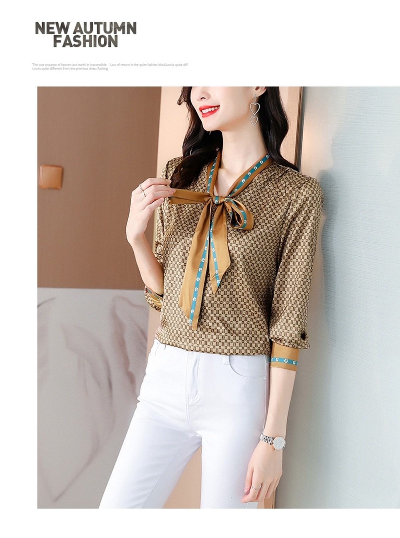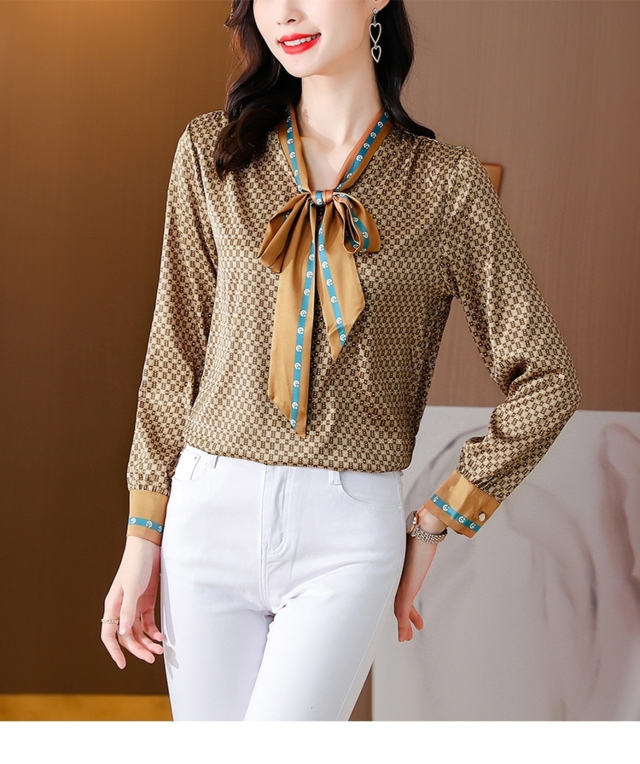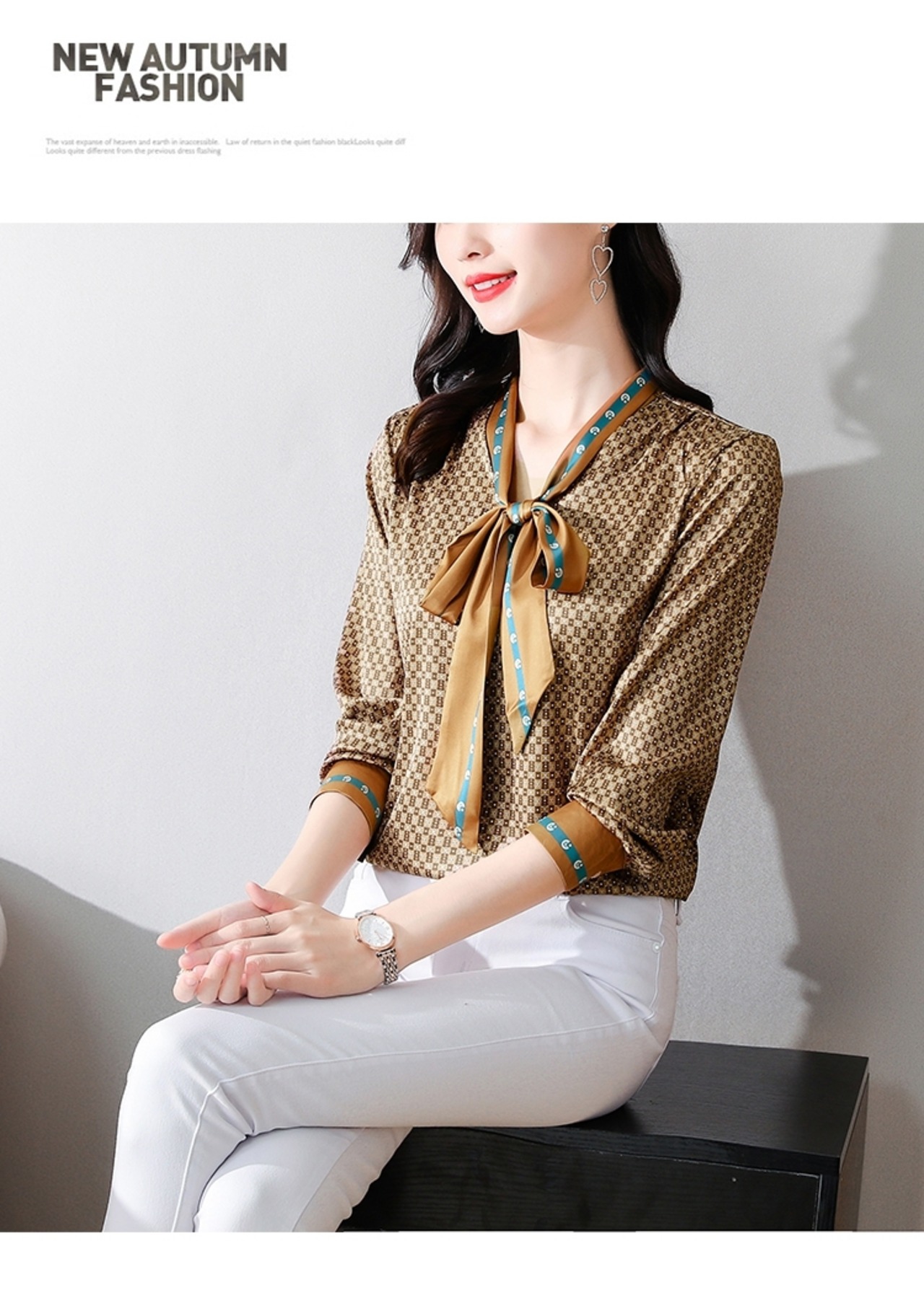 個性的 トップス シャツ ブラウス 袖あり 長袖 Vネック ボウタイ Iライン スマート シフォン サテン かわいい 大人可愛い きれいめ 大人 上品 おしゃれ お洒落 かっこいい レトロ 大人女子 エレガント 主役級 存在感 とろみ感 抜け感 フェミニン 柄 総柄 秋 冬 10代 20代 30代 40代 レディース 女性用 オフィス OL 学生 通学 デート お出かけ 着回し 普段使い モテ M L XL 2XL 3XL 大きいサイズ 大きい 大きめ ビッグサイズ ブラウン
