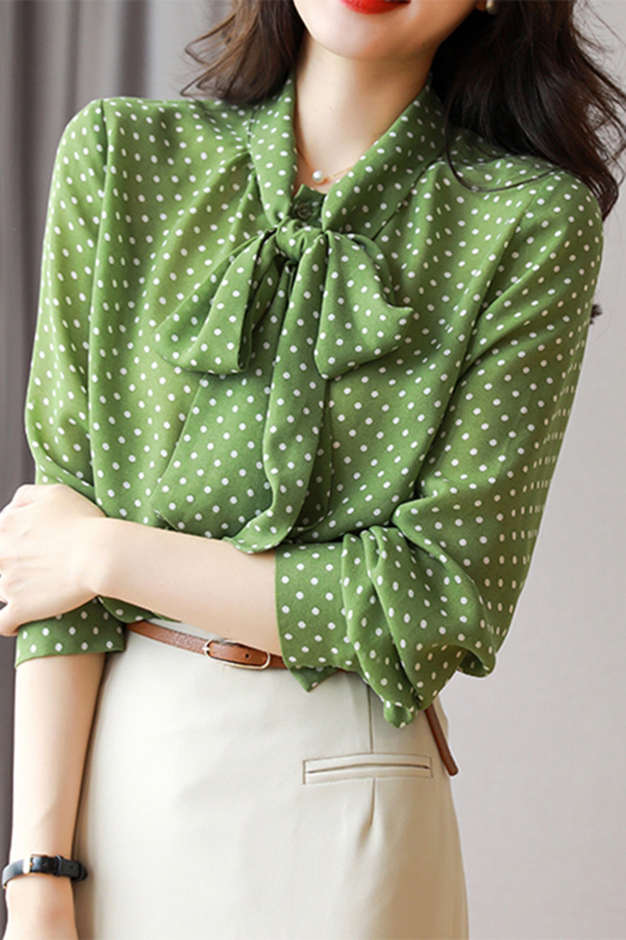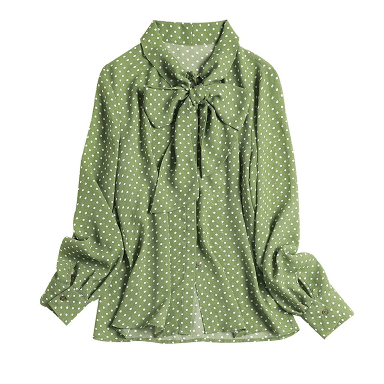 トップス シャツ ブラウス 袖あり 長袖 ボウタイ リボン ポリエステル かわいい 大人可愛い きれいめ シンプル カジュアル 大人 上品 おしゃれ お洒落 レトロ 大人女子 こなれ感 ラブリー キュート ガーリー エレガント とろみ感 抜け感 フェミニン ドット柄 水玉 春 夏 秋 謝恩会 結婚式 二次会 披露宴 10代 20代 30代 40代 レディース 女性用 学生 デート お出かけ 休日 パーティー 着回し 普段使い モテ M L XL 2XL 3XL 大きいサイズ グリーン