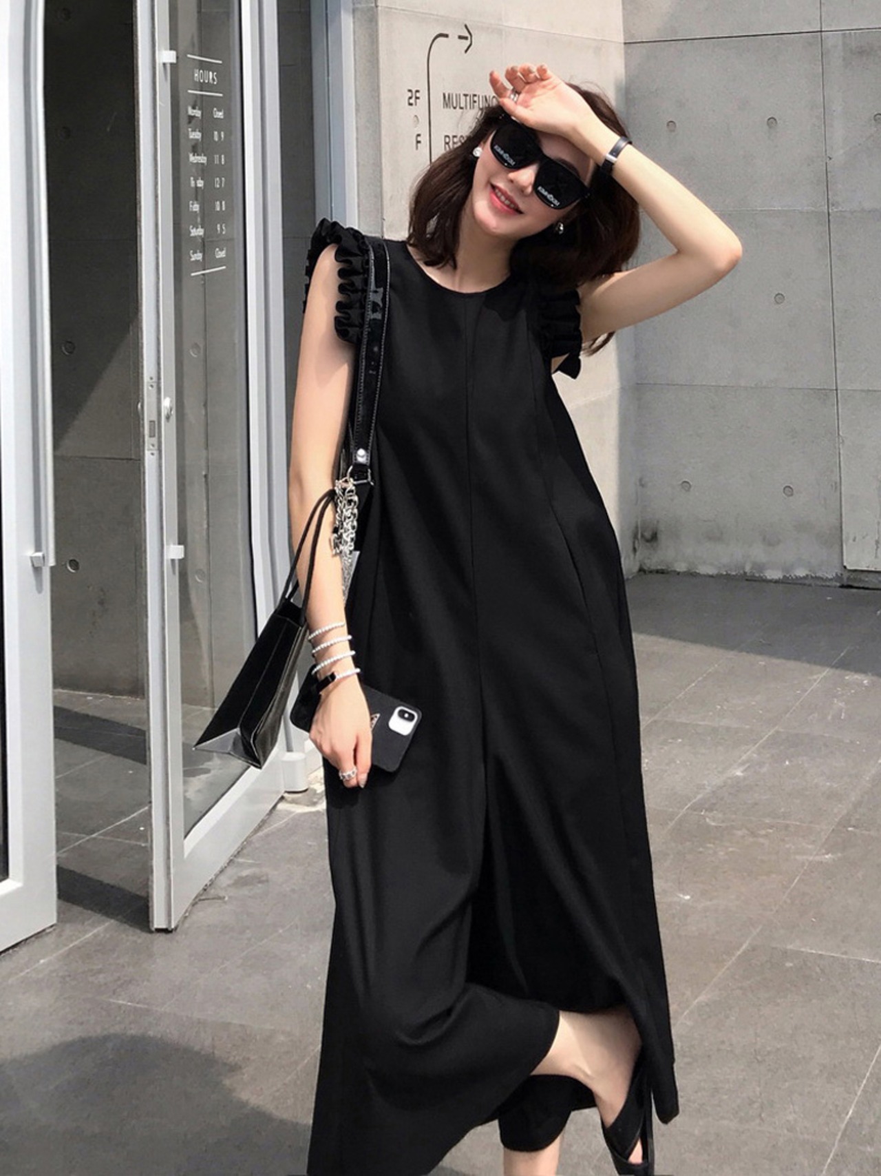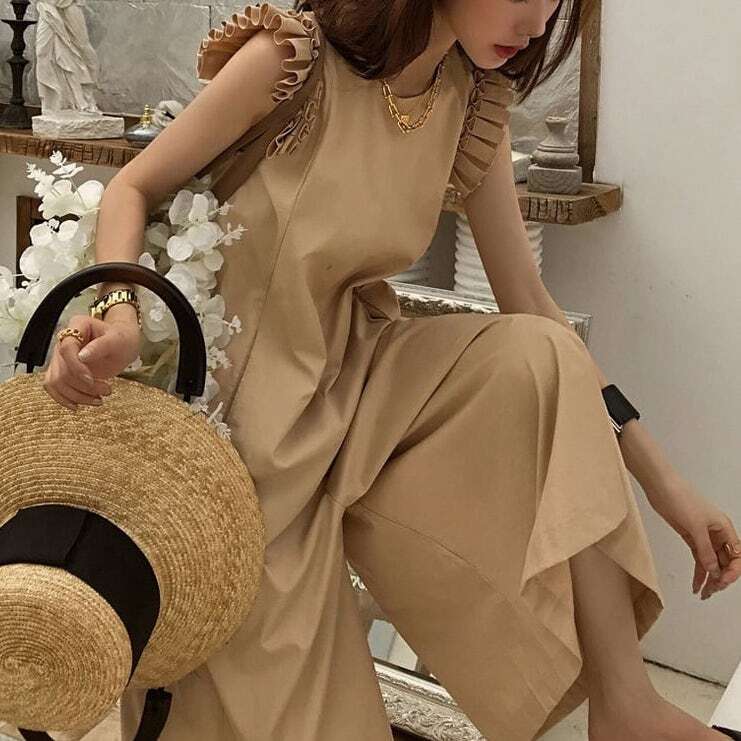 膝下 ミモレ ミモレ丈 ロング ロング丈 ノースリーブ ラウンドネック ワイド ガウチョ フリル 大人可愛い きれいめ シンプル 大人 上品 おしゃれ お洒落 大人女子 こなれ感 ラフ ラブリー キュート エレガント 抜け感 無地 春 夏 10代 20代 30代 40代 50代 60代 レディース 女性用 学生 通学 デート お出かけ 休日 イベント リゾート 旅行 海 高原 ガーデン 楽ちん モテ S M L XL 黒 ブラック 茶色 ブラウン ベージュ
