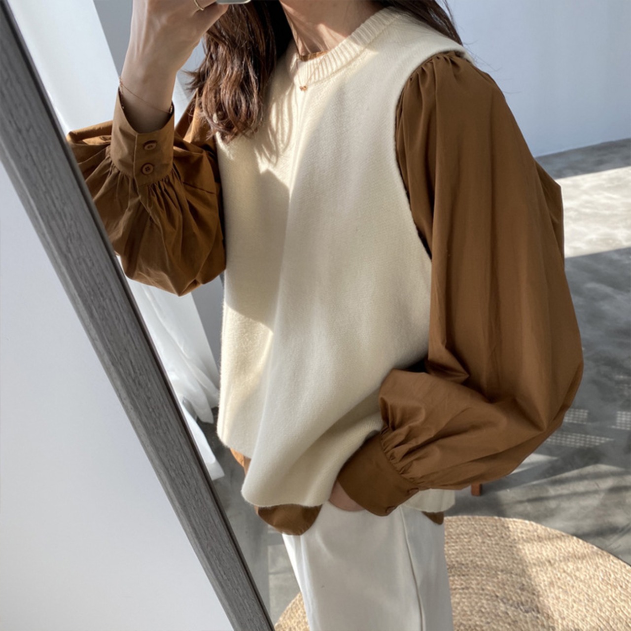 1枚できるだけでなくカーディガンを羽織ったり、ベストを着るとまた違った印象に。