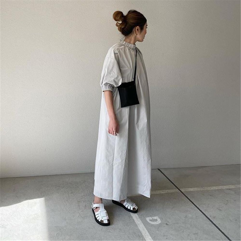 ワンピース シャツワンピース ロング ロング丈 マキシ マキシ丈 袖あり ボリューム袖 スタンドカラー ストレート ワイド きれいめ シンプル カジュアル 大人 上品 おしゃれ お洒落 大人女子 こなれ感 ラフ メンズライク マニッシュ ボーイッシュ とろみ感 抜け感 無地 春 夏 秋 10代 20代 30代 40代 50代 60代 レディース 女性用 お出かけ 休日 リゾート 旅行 フリーサイズ ゆったり 白 ホワイト 黒 ブラック 青 ブルー ネイビー