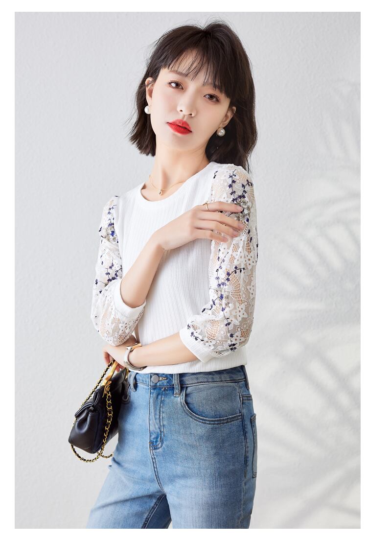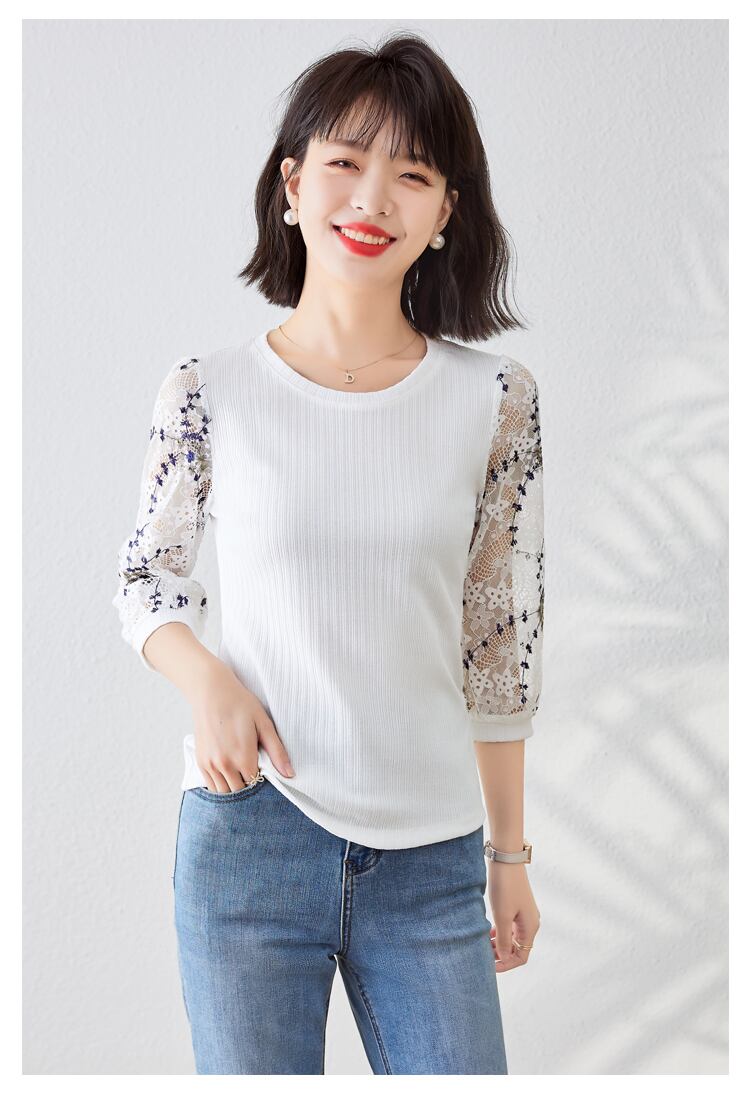 トップス Tシャツ カットソー 白シャツ 白トップス 袖あり 7分袖 七分袖 パフスリーブ ラウンドネック レース 刺繍 透け感 シースルー かわいい 大人可愛い きれいめ シンプル カジュアル 大人 上品 おしゃれ お洒落 大人女子 ラブリー キュート ガーリー エレガント 抜け感 フェミニン 花柄 小花柄 フラワー 春 夏 10代 20代 30代 レディース 女性用 デート お出かけ 女子会 休日 着回し 普段使い 重ね着 モテ S M L XL 2XL 白 ホワイト