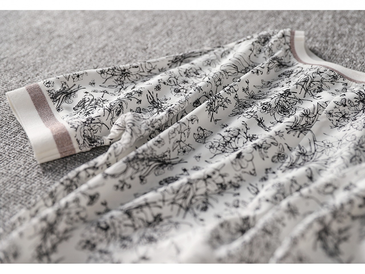 ネックラインと袖口のゴールドのラインが華やかな印象です。