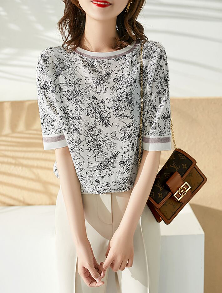 トップス Tシャツ カットソー プルオーバー 袖あり 5分袖 五分袖 ラウンドネック かわいい 大人可愛い きれいめ シンプル カジュアル 大人 上品 おしゃれ お洒落 エキゾチック 大人女子 こなれ感 ラブリー キュート ガーリー エレガント モダン 抜け感 フェミニン 柄 花柄 小花柄 フラワー ボタニカル プリント 総柄 春 夏 秋 10代 20代 30代 40代 50代 60代 レディース 女性用 デート お出かけ 女子会 休日 着回し 普段使い モテ M L XL 2XL 3XL