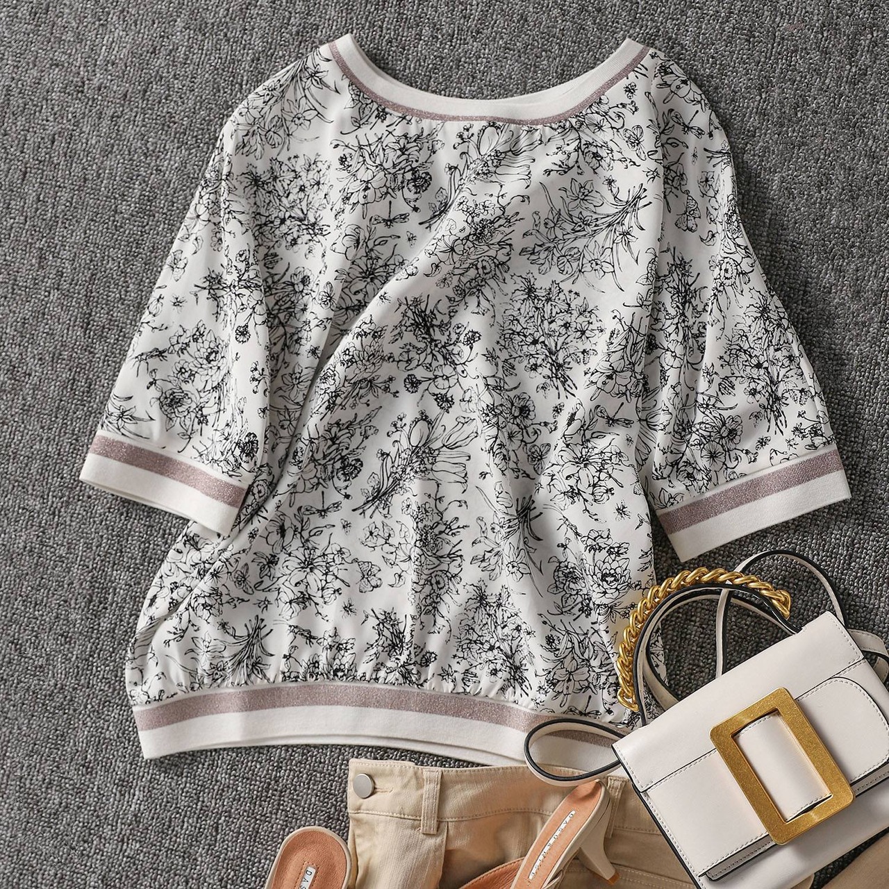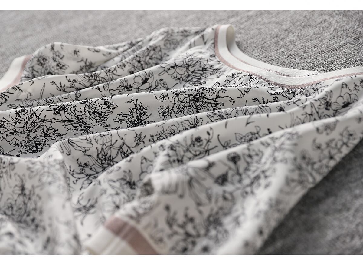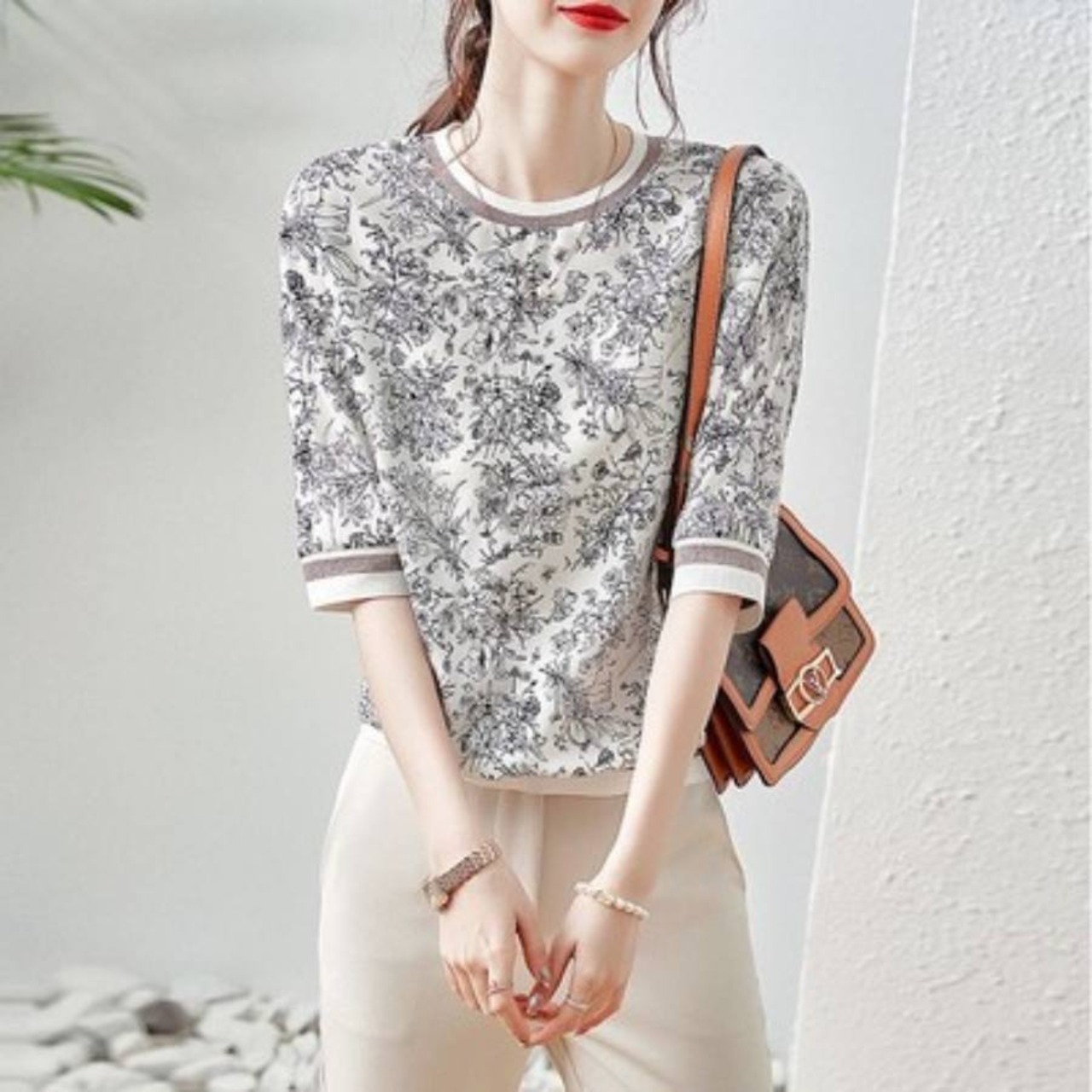 花柄プリントがお洒落な5分袖カットソーです。