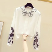 トップス シャツ ブラウス 白シャツ 白トップス 袖あり 長袖 クルーネック シフォン かわいい 大人可愛い きれいめ シンプル カジュアル 大人 上品 おしゃれ お洒落 レトロ 大人女子 こなれ感 キュート ガーリー エレガント フェミニン 柄 花柄 フラワー 春 夏 秋 冬 オールシーズン シーズンレス 10代 20代 30代 40代 50代 60代 レディース 女性用 オフィス OL 通勤 学生 通学 デート 着回し 普段使い モテ S M L XL 2XL ホワイト