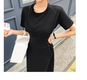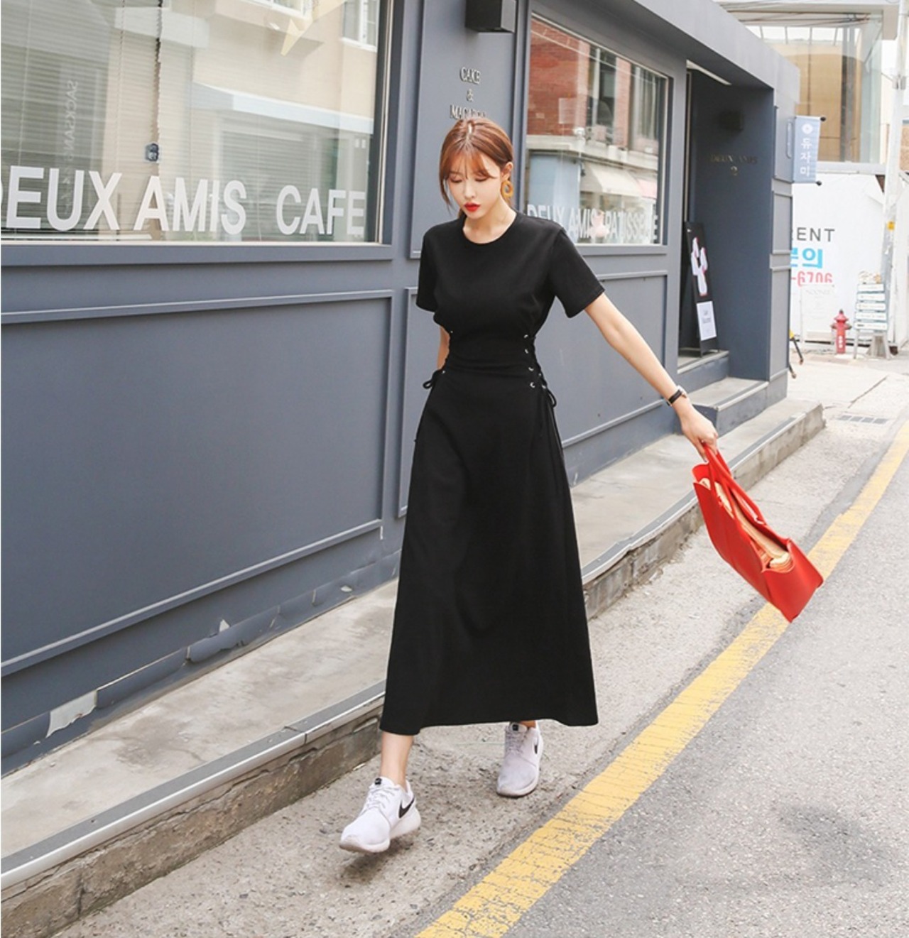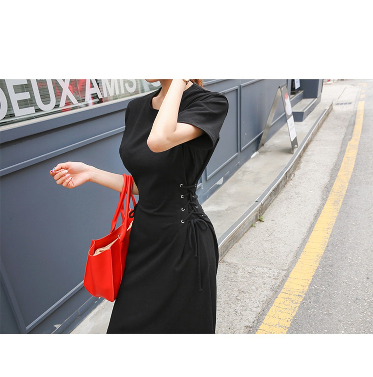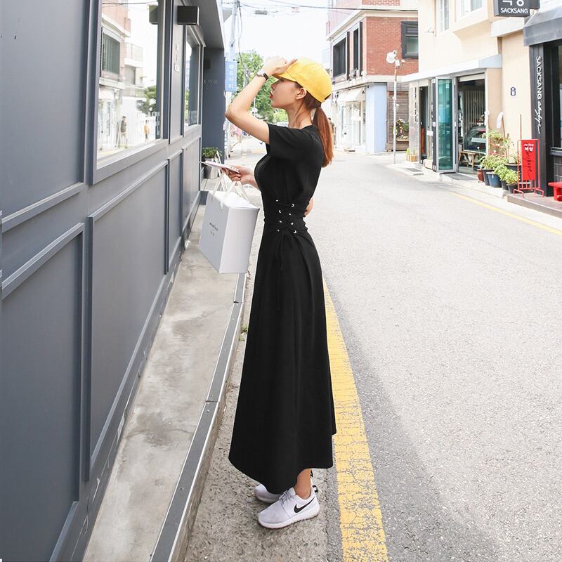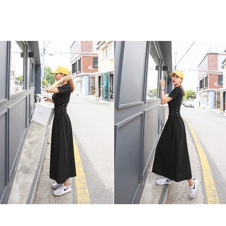 ワンピース フレアワンピース ミモレ ミモレ丈 ロング ロング丈 マキシ マキシ丈 袖あり 半袖 ラウンドネック フレア スリム Aライン リボン ウエストマーク ウエストリボン ハイウエスト 編み込み レースアップ かわいい 大人可愛い シンプル カジュアル 大人 上品 おしゃれ お洒落 かっこいい 大人可愛い 大人女子 個性的 クール モード系 セクシー エレガント モダン フェミニン 無地 春 夏 20代 レディース デート お出かけ モテ 体系カバー 脚長 M XL フリーサイズ 黒 ブラック