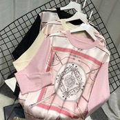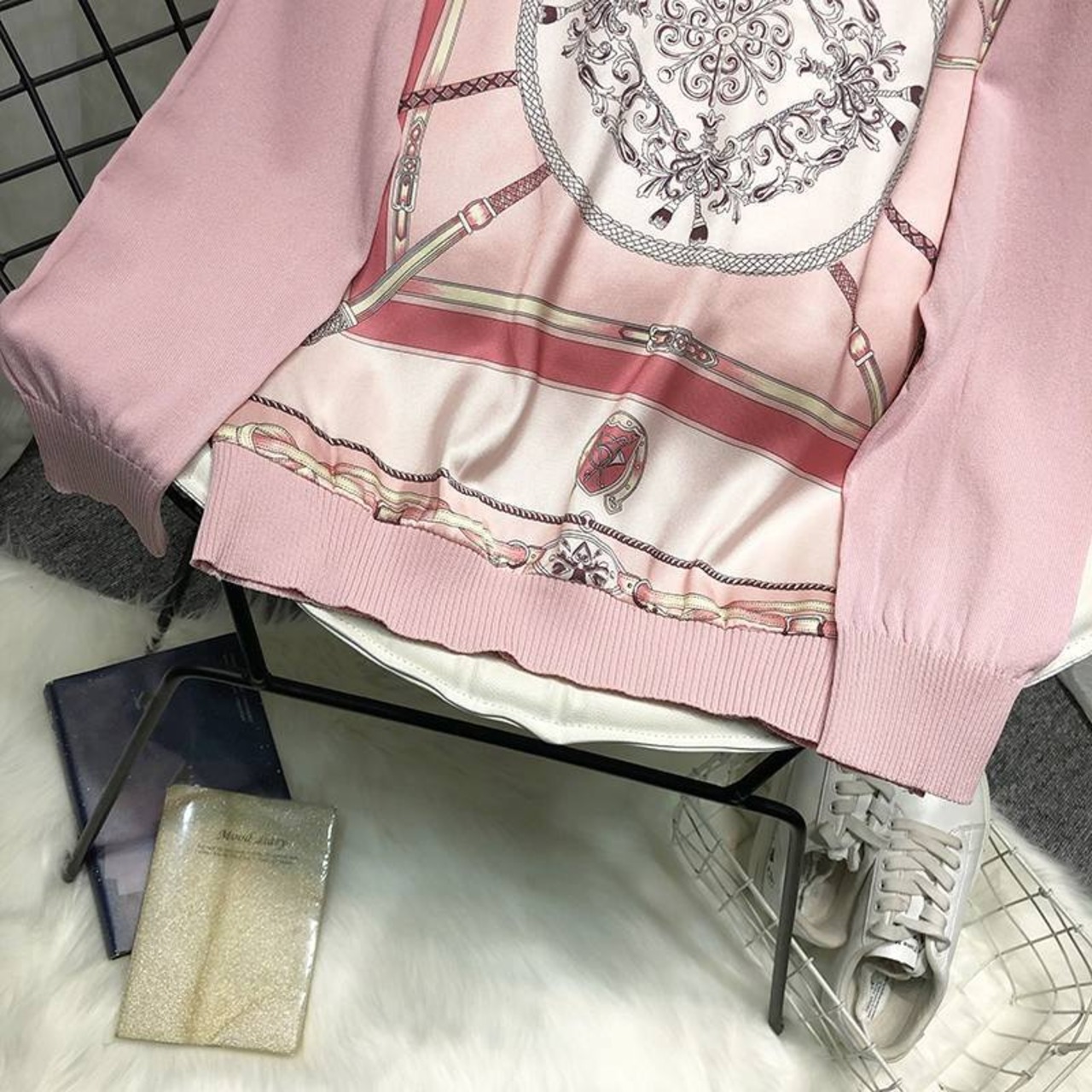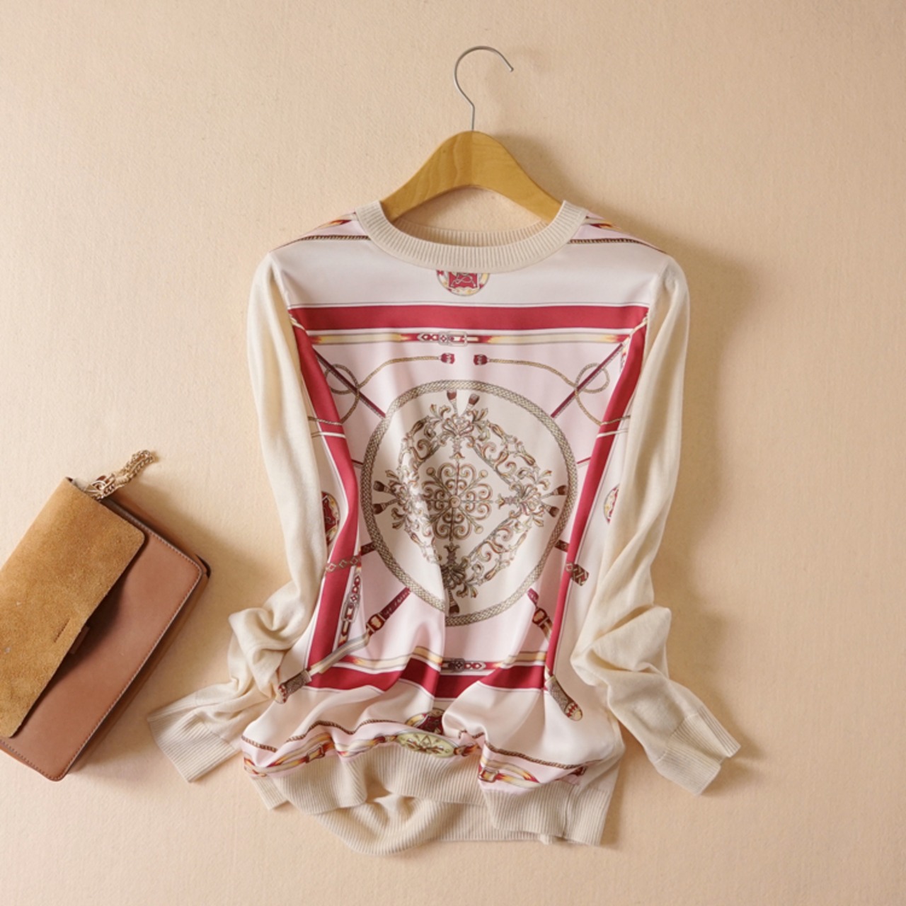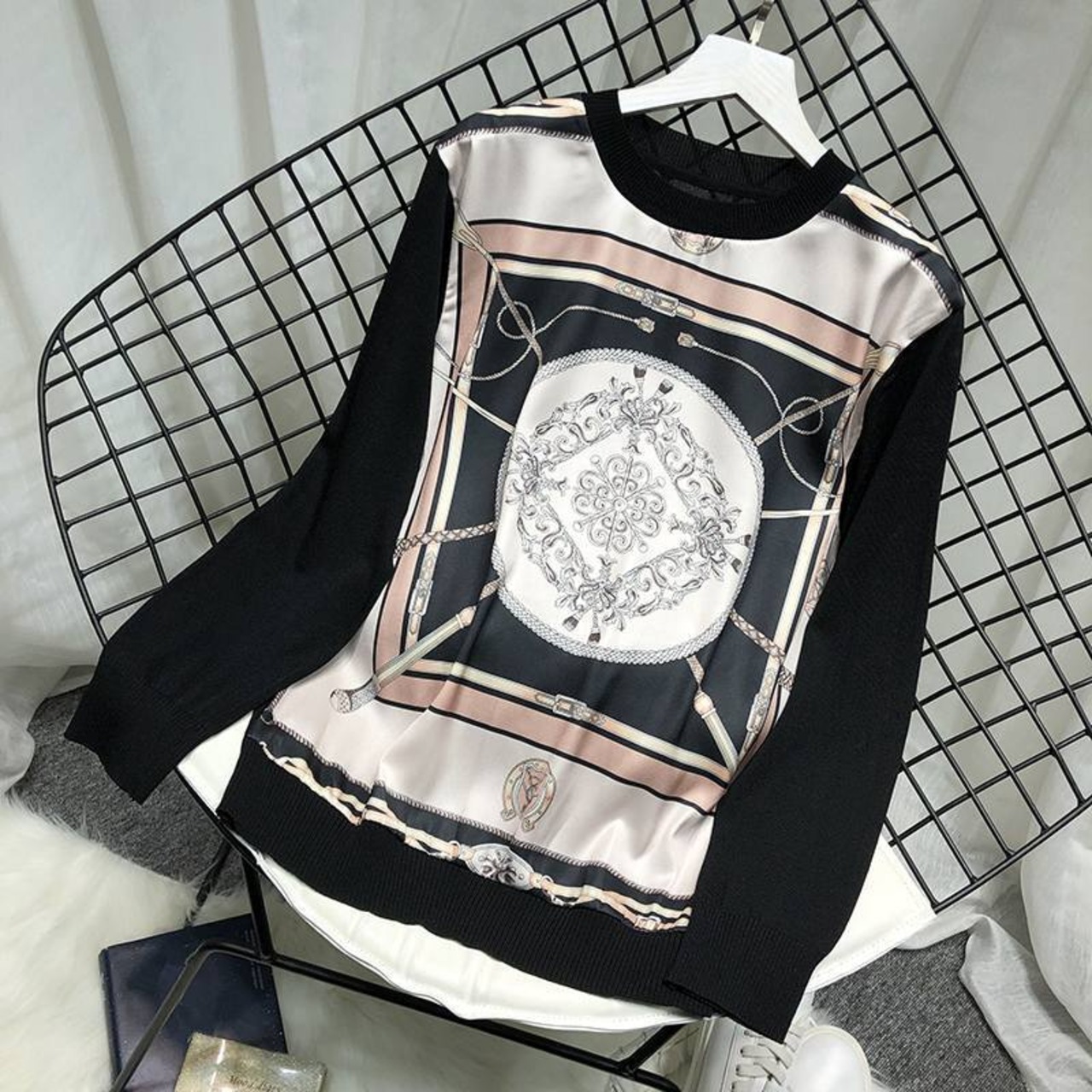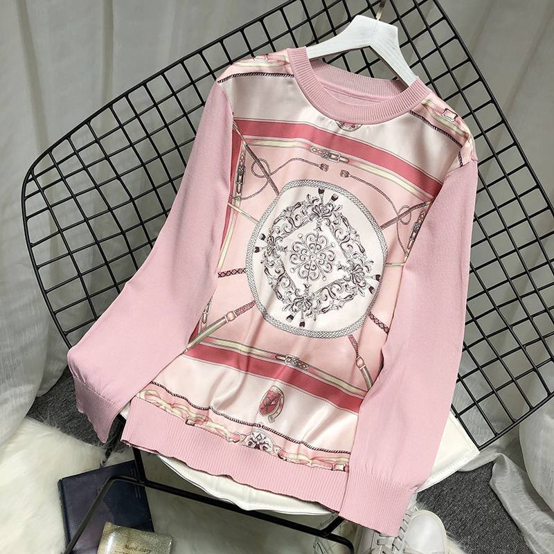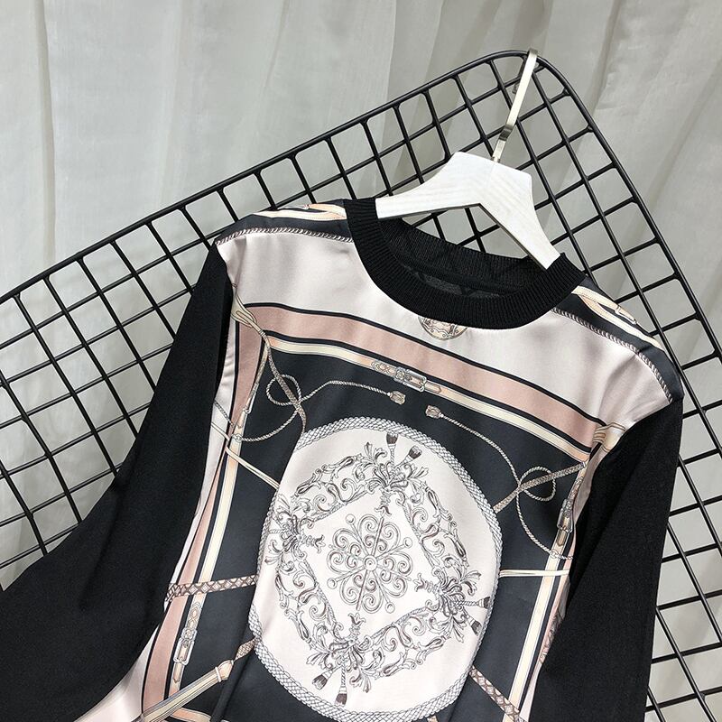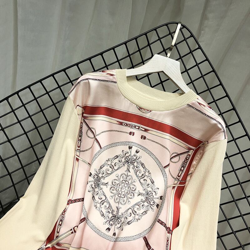 トップス Tシャツ カットソー ニットソー 袖あり 長袖 ラウンドネック 伸縮性 ニット サテン かわいい 大人可愛い きれいめ カジュアル 大人 上品 おしゃれ お洒落 レトロ エキゾチック 大人女子 こなれ感 キュート ガーリー 個性的 セクシー エレガント モダン 柄 プリント 春 秋 10代 20代 30代 40代 50代 60代 レディース 女性用 学生 デート お出かけ 休日 着回し 普段使い モテ ブラック オフホワイト ピンク アプリコット 3色展開
