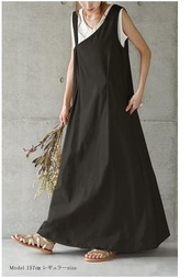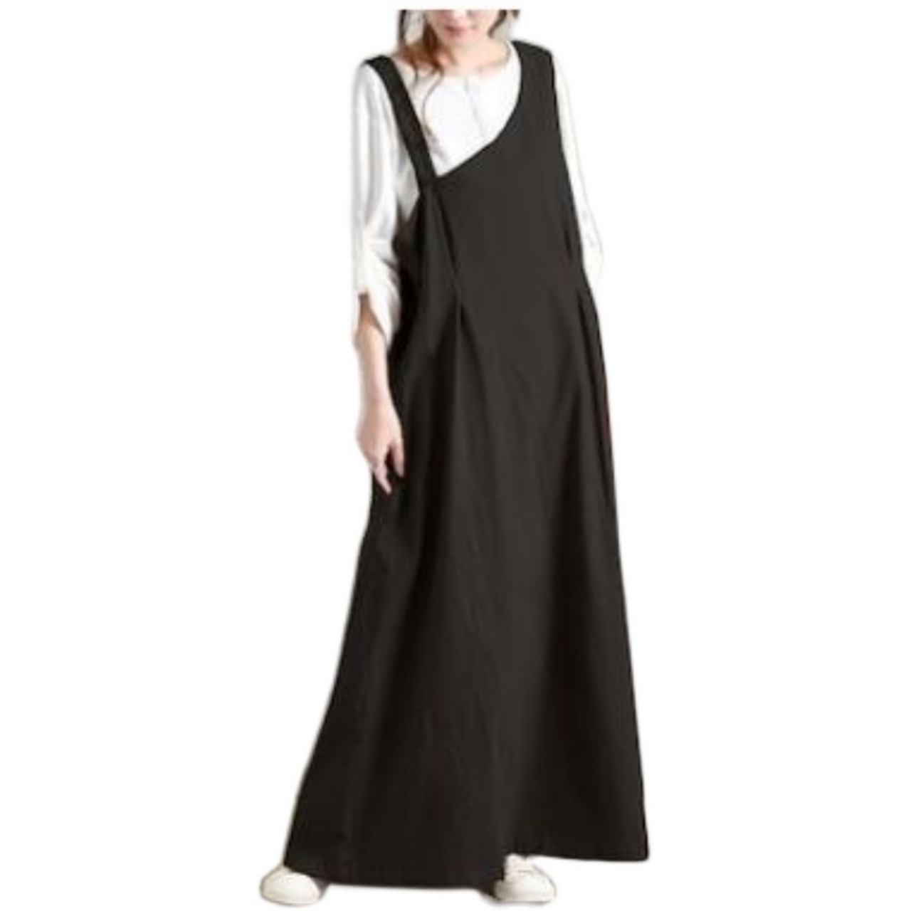 ワンピース マキシ丈 Aライン リネン かわいい 大人可愛い きれいめ シンプル 大人 おしゃれ 大人可愛い 大人女子 こなれ感 ラフ 無地 オールシーズン 20代 30代 レディース 女性用 デート お出かけ 公園デビュー 休日 アウトドア イベント モテ 体型カバー フリーサイズ ブラック ベージュ