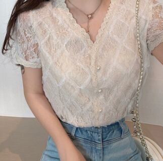 トップス シャツ ブラウス 袖あり 半袖 Vネック 襟なし レース かわいい 大人可愛い きれいめ 大人 上品 おしゃれ お洒落 大人可愛い 大人女子 エレガント 主役級 存在感 抜け感 無地 春 夏 秋 10代 20代 30代 レディース 女性用 OL 通勤 デート お出かけ 女子会 お泊まり 休日 イベント 旅行 高原 ホテル ガーデン レストラン 着回し コーデ スタイル モテ XS S M オフホワイト アプリコット