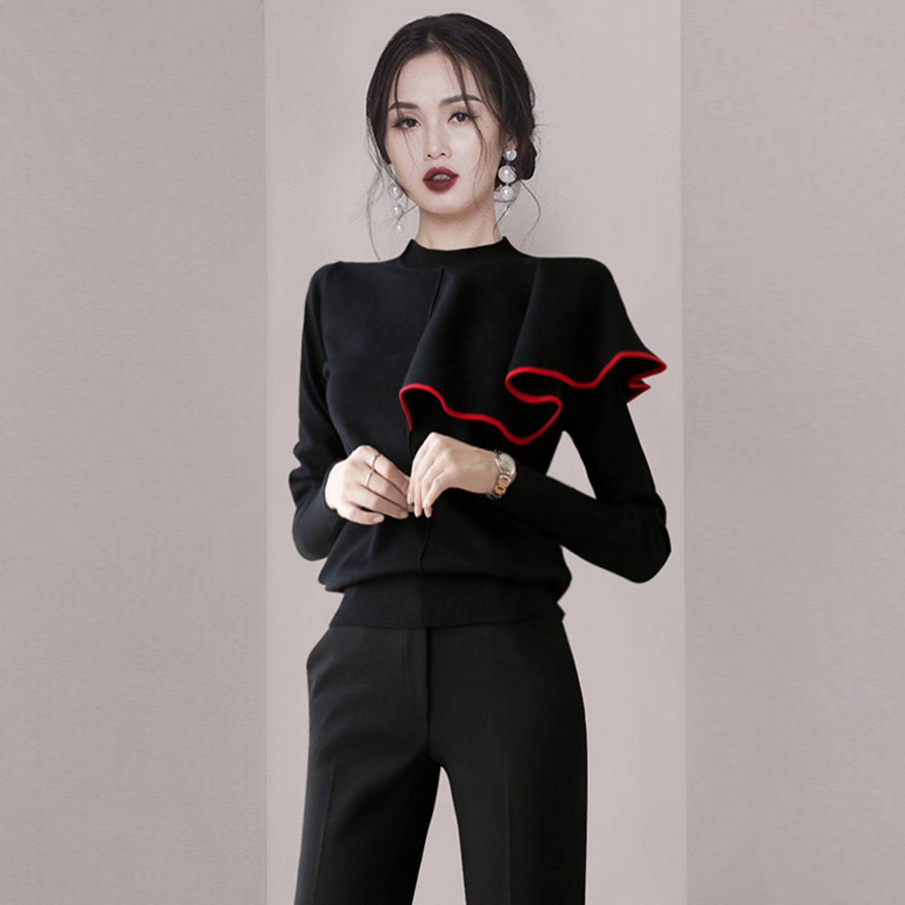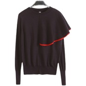 ボリューム感のあるアシンメトリーなフリルが個性的なニットソーです。