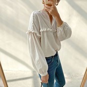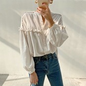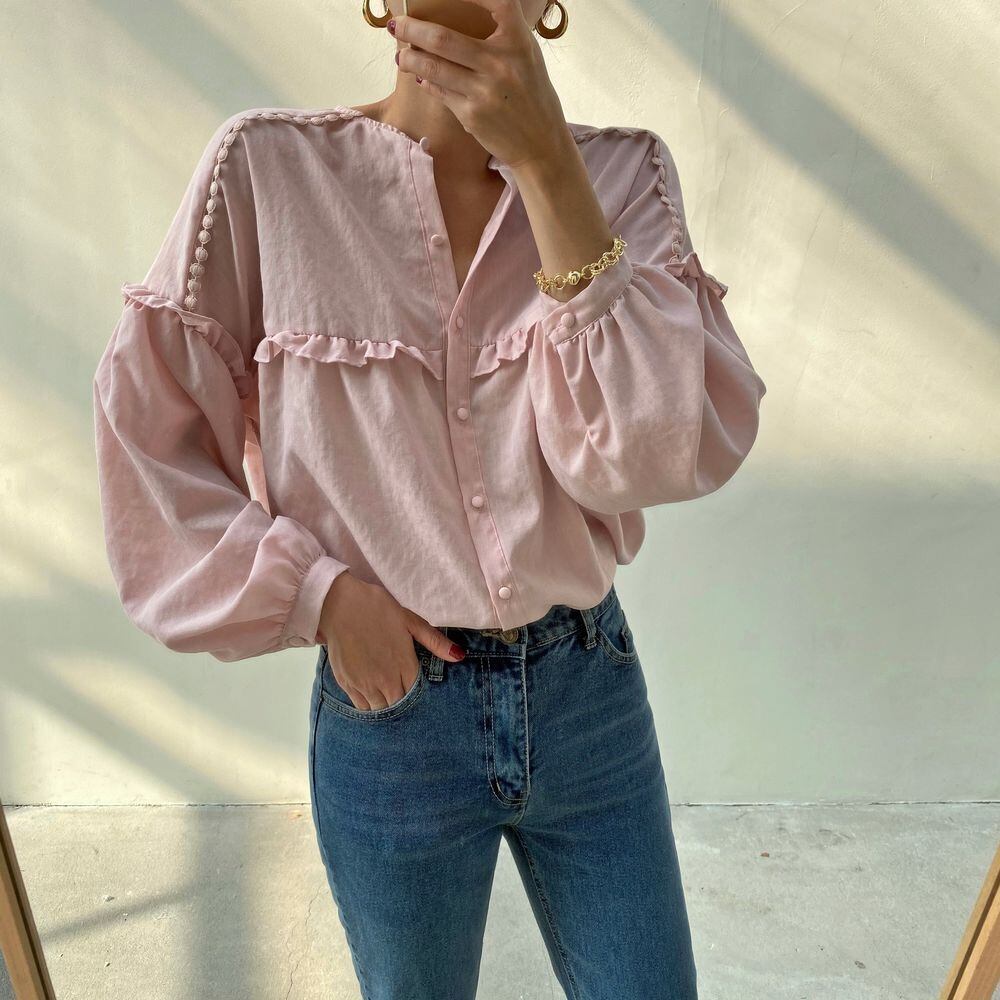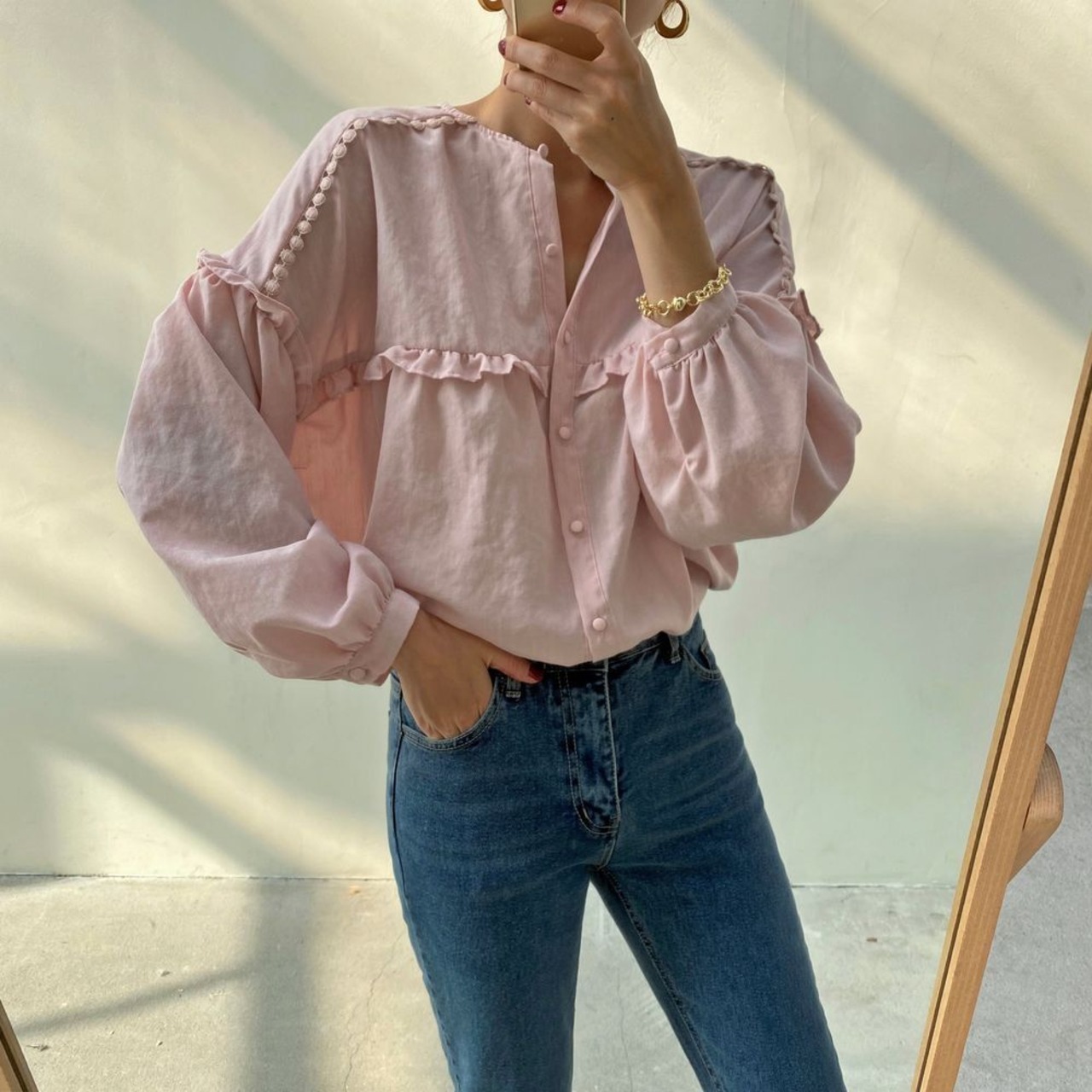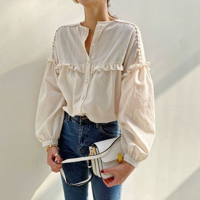 ボリューム感のあるバルーンスリーブが可愛いブラウス。