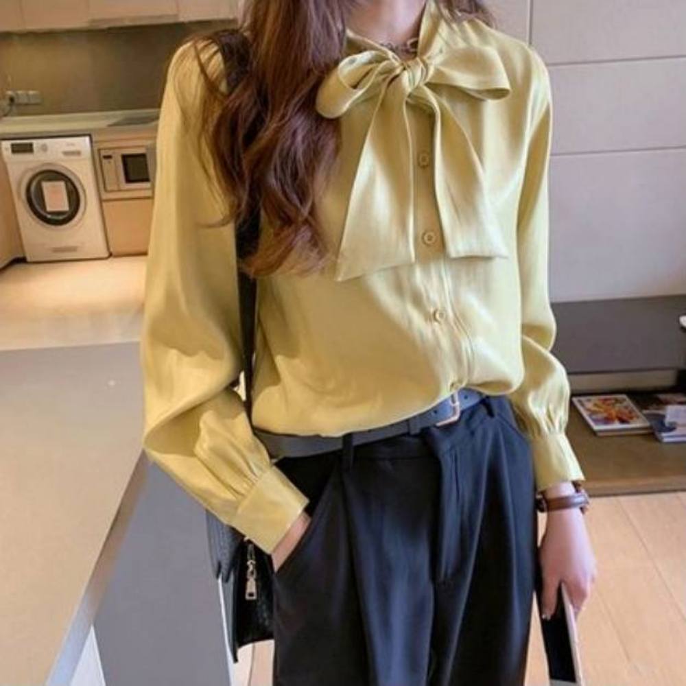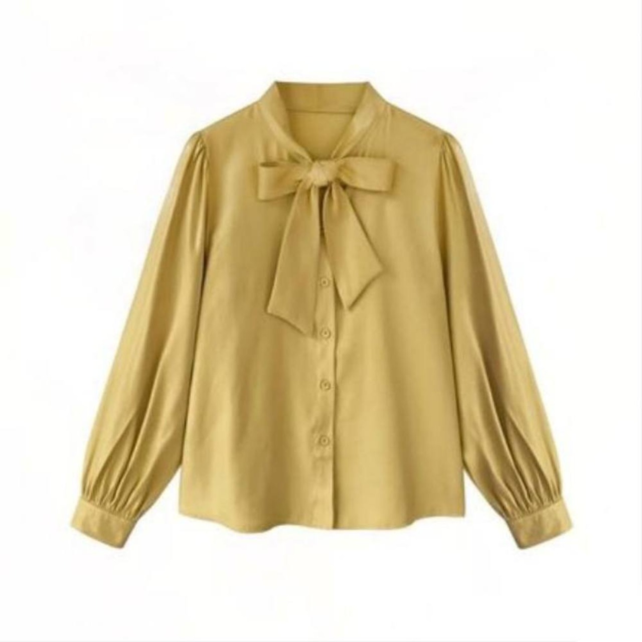 ボウタイが可愛いとろみ感のあるブラウスです。