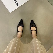 リボン、ドット、シースルー...と可愛いがいっぱい詰まったポインテッドトゥパンプスです。