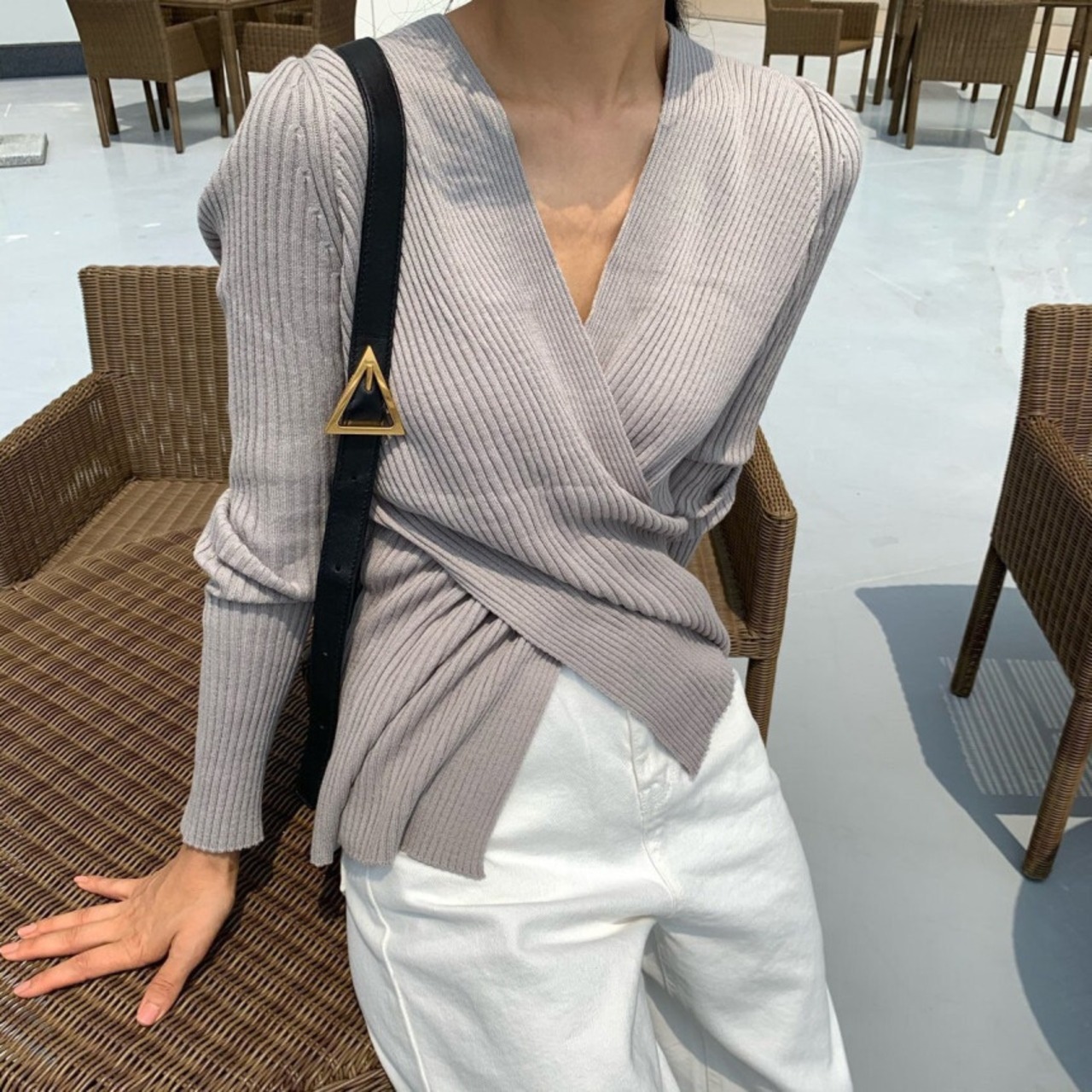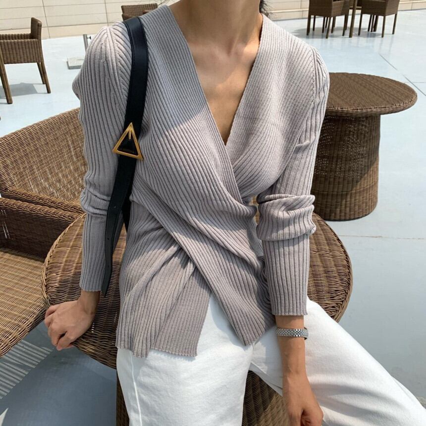 トップス カットソー ニットソー プルオーバー 白トップス 袖あり 長袖 Vネック カシュクール スリム タイト 細身 ニット サマーニット かわいい 大人可愛い きれいめ シンプル カジュアル 大人 上品 おしゃれ お洒落 大人女子 こなれ感 ラフ セクシー エレガント モダン 抜け感 フェミニン 無地 春 夏 秋 10代 20代 30代 40代 レディース 女性用 学生 デート お出かけ 休日 着回し 普段使い モテ 体系カバー フリーサイズ ブラック グレー オフホワイト ベージュ カーキ