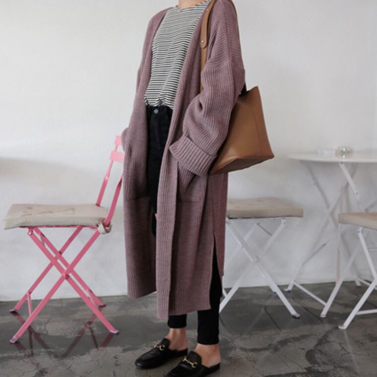 シンプルで飽きのこないデザインのロングカーディガンです。