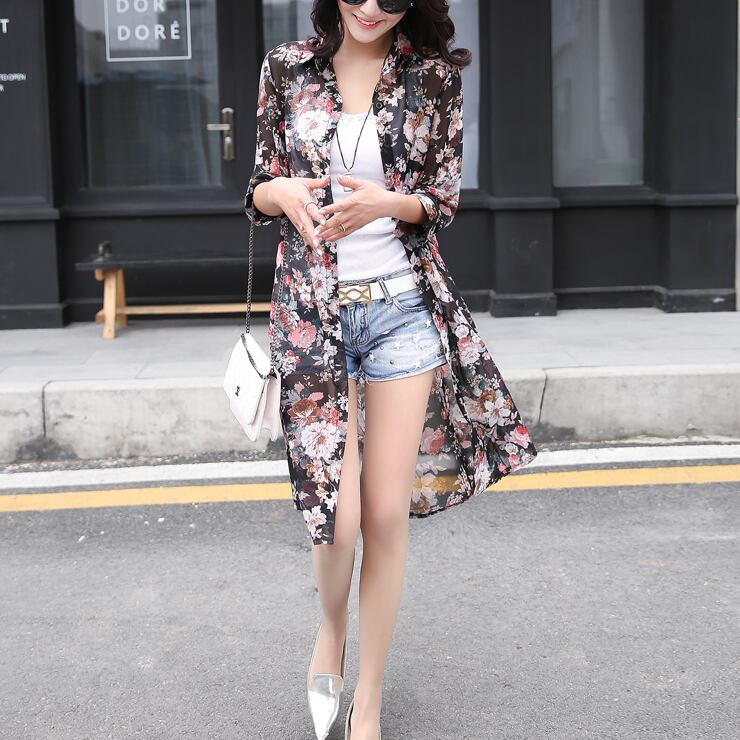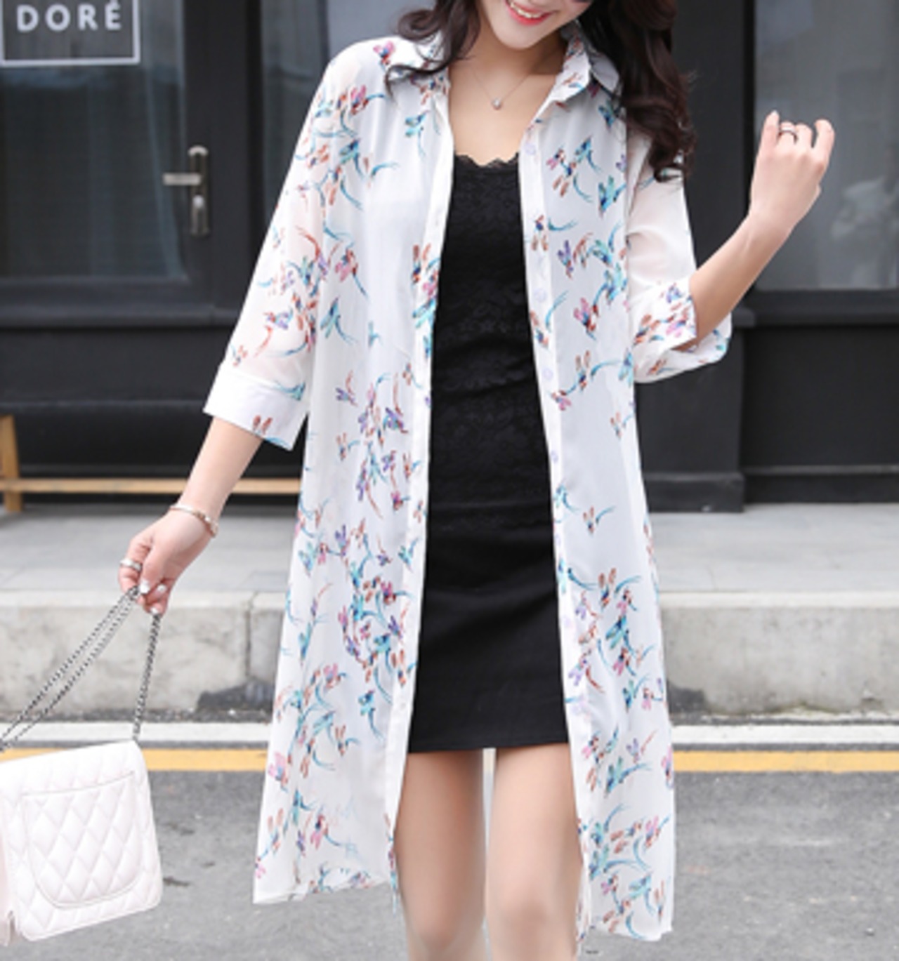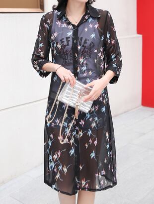 華やかなデザインと透け感が大人っぽいシャツワンピです。
