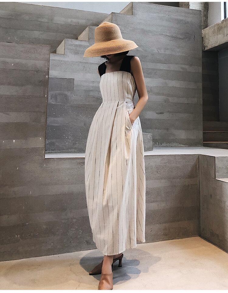 ノースリーブやクロスバック、足首が見える丈感が、女性らしさを引き立てる魅力的な一着です。