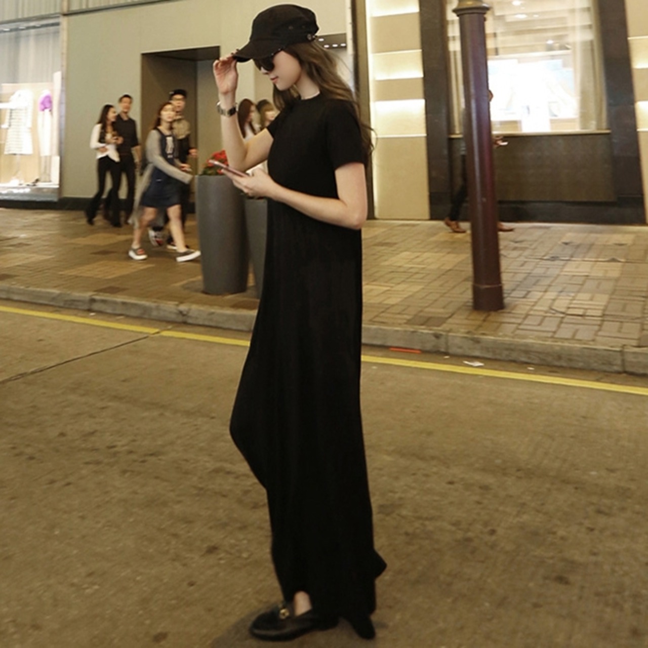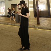 シンプルな無地ブラックのTシャツワンピースです。