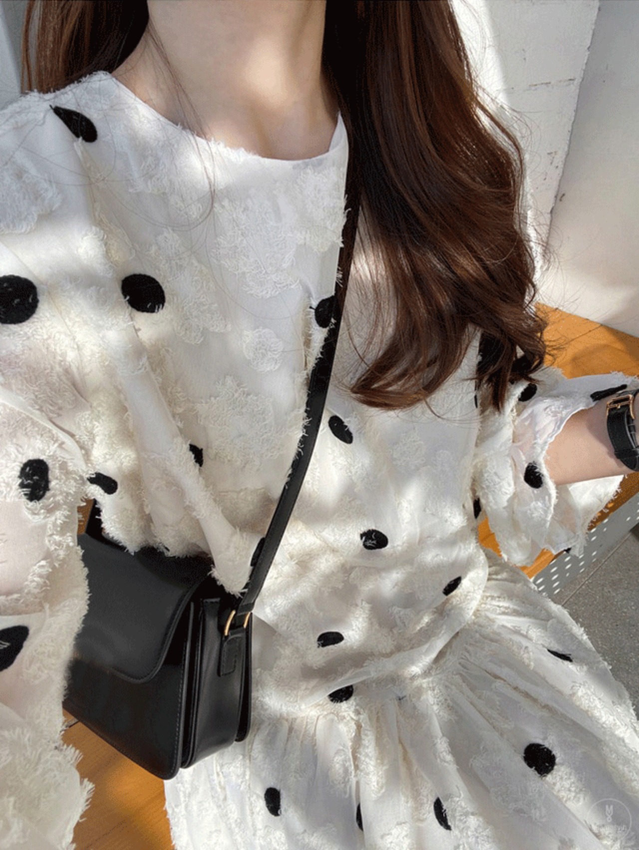 大きめのドット柄が女性らしさを引き立てます。