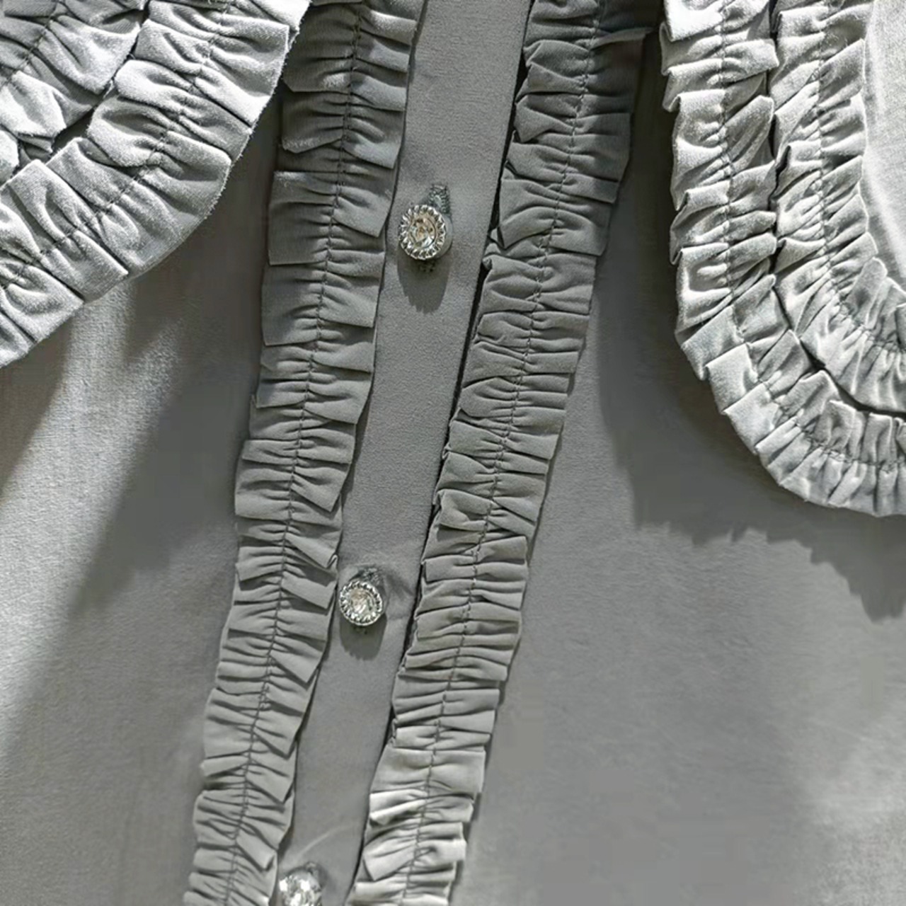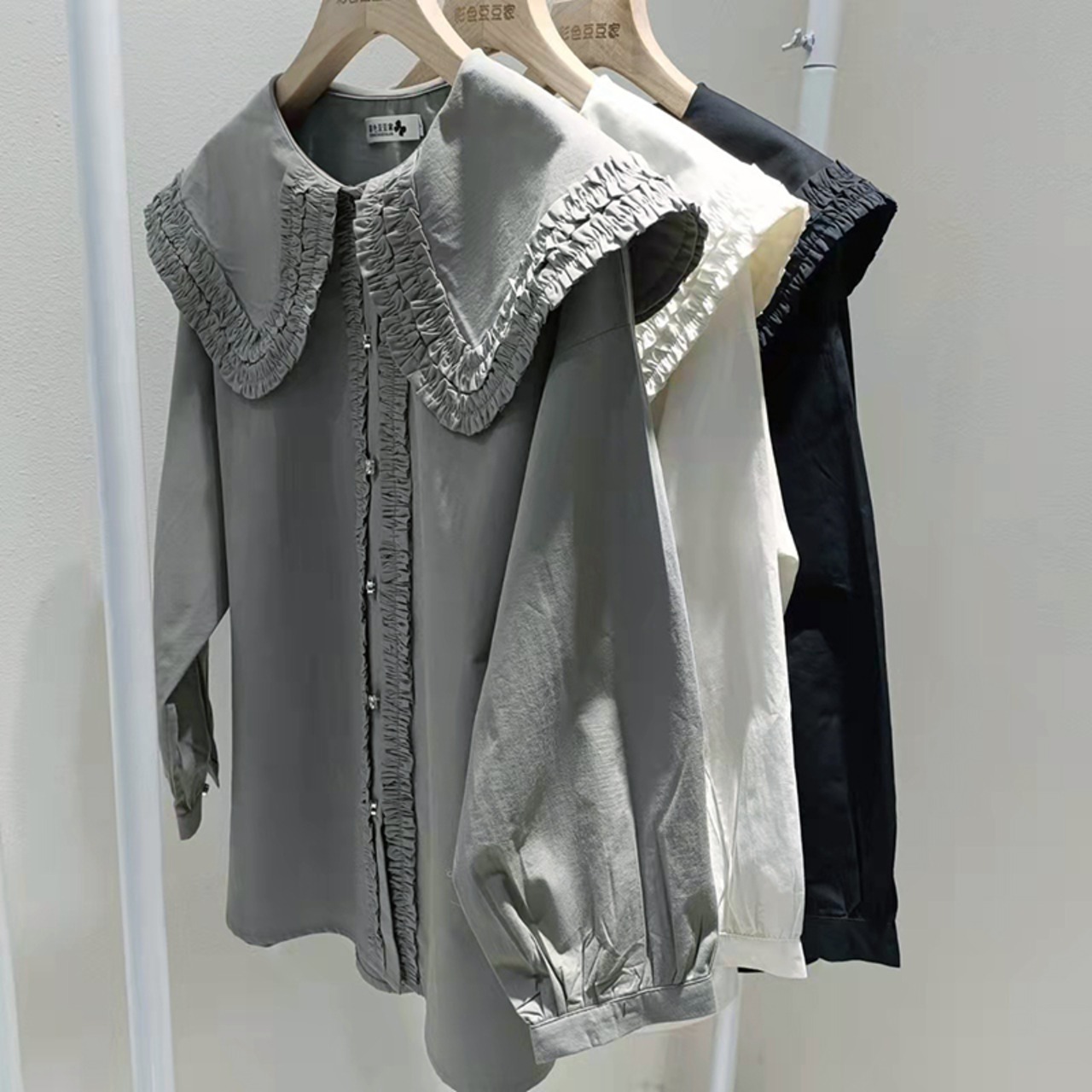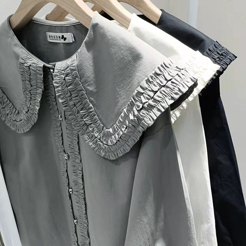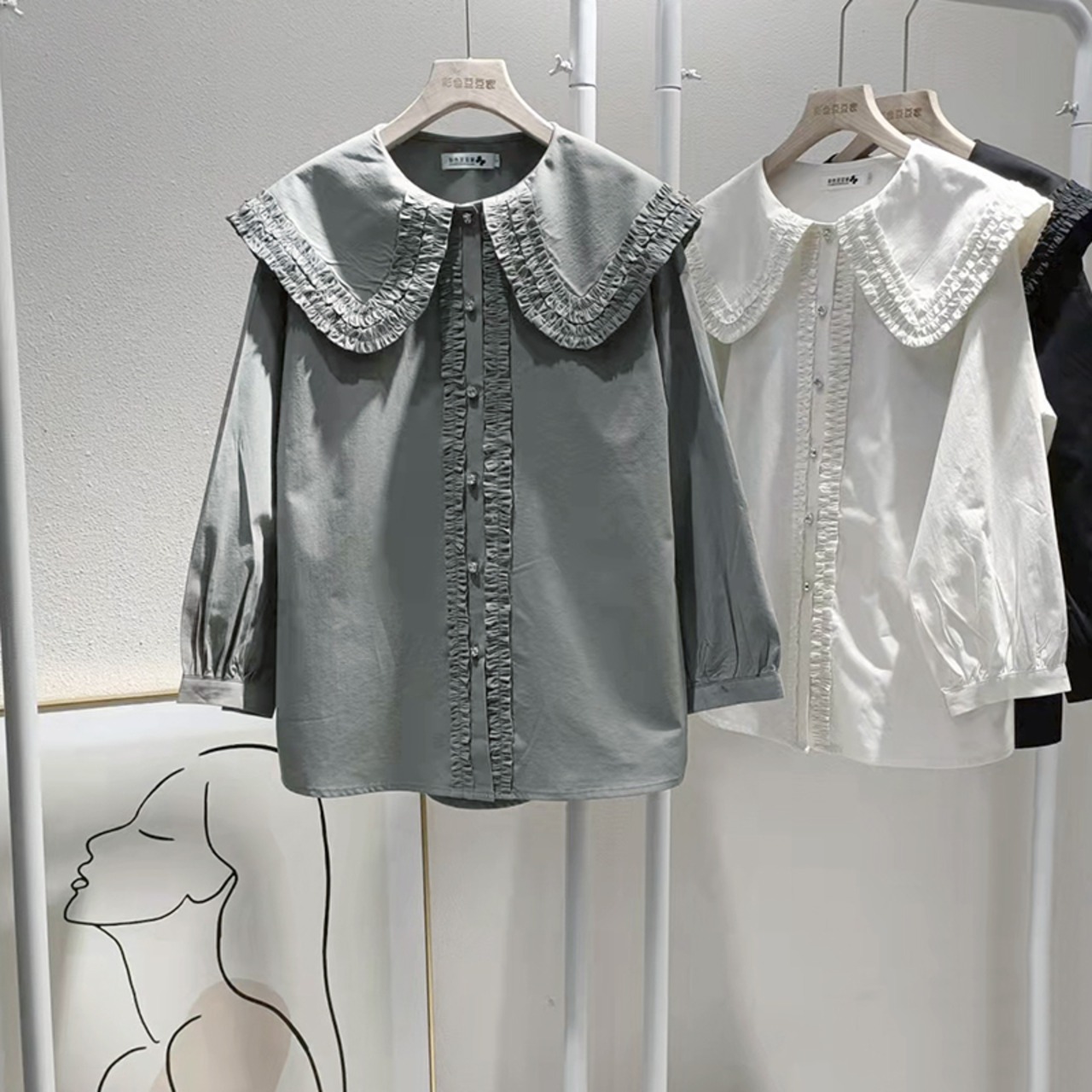 トップス ブラウス 袖あり 長袖 襟付き フリル 前開き 大人可愛い 大人 おしゃれ お洒落 かっこいい 大人女子 こなれ感 ラブリー キュート ガーリー 個性的 主役級 存在感 春 夏 秋 冬 オールシーズン シーズンレス 2022 2023 10代 20代 30代 40代 50代 60代 レディース 女性用 ママ 学生 通学 デート お出かけ 女子会 休日 パーティー イベント ホテル ガーデン レストラン ファッション コーデ スタイル L XL 2XL 白 ホワイト 黒 ブラック 灰色 グレー