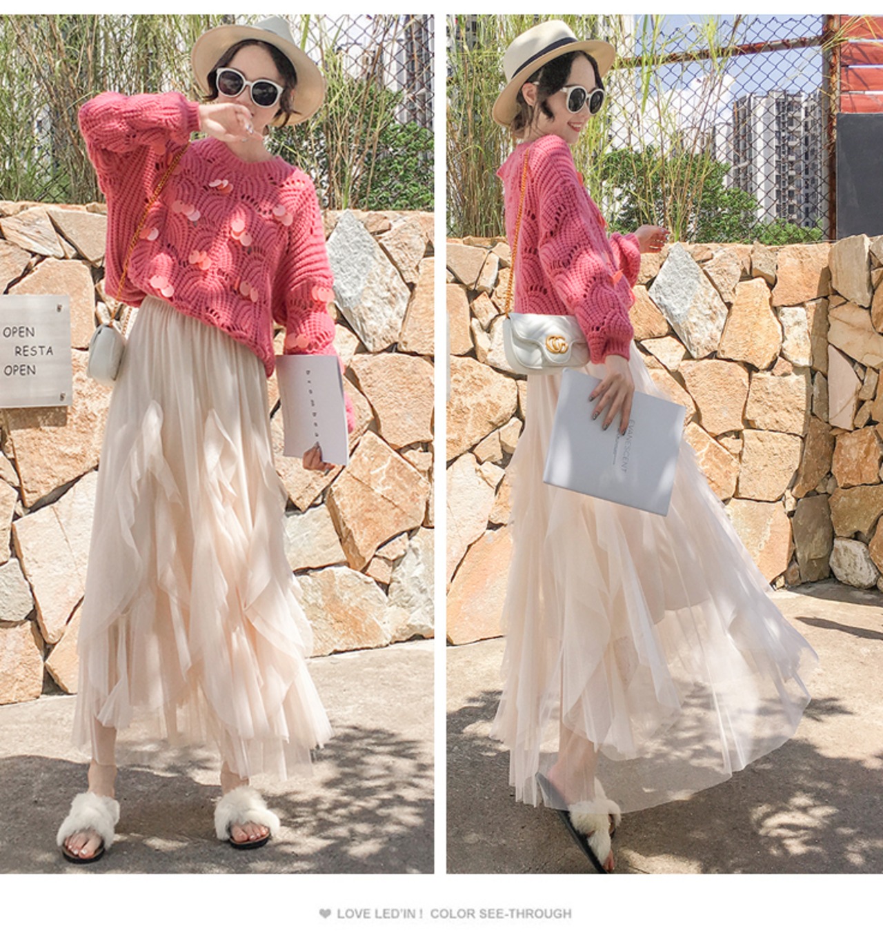 何層にも重なった透明感のあるチュールが女性らしさを引き立てる魅力的な一着です。