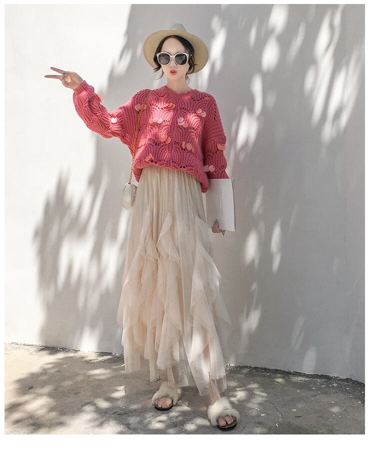 ボリューミーなフリルが可愛い、ドレスのようなチュールスカート。