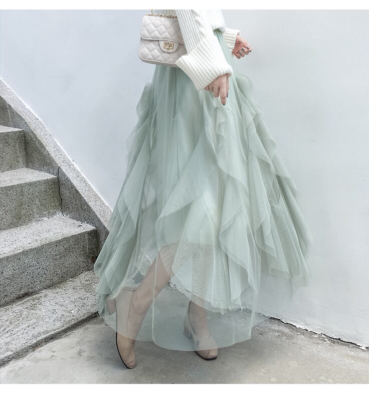 スカート ボトムス ロングスカート フレアスカート チュールスカート ロング ロング丈 マキシ マキシ丈 フレア Aライン アシンメトリー チュール もこもこ モコモコ ふわふわ ハイウエスト ウエストゴム 透け感 シースルー かわいい 大人可愛い きれいめ シンプル カジュアル 大人 上品 おしゃれ お洒落 大人女子 こなれ感 ラブリー キュート ガーリー エレガント 主役級 存在感 抜け感 フェミニン 無地 レディース デート お出かけ 休日 着回し 普段使い 楽ちん モテ 体系カバー ゆったり ゆる