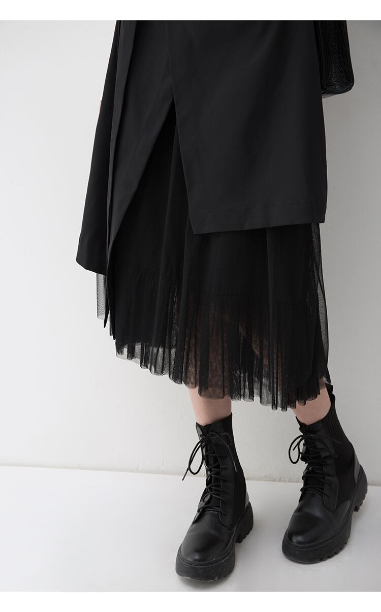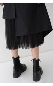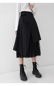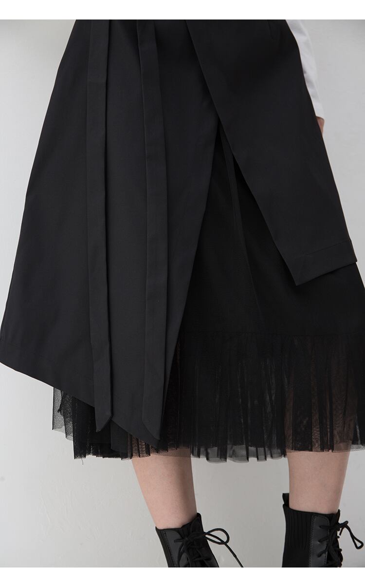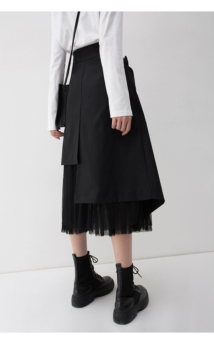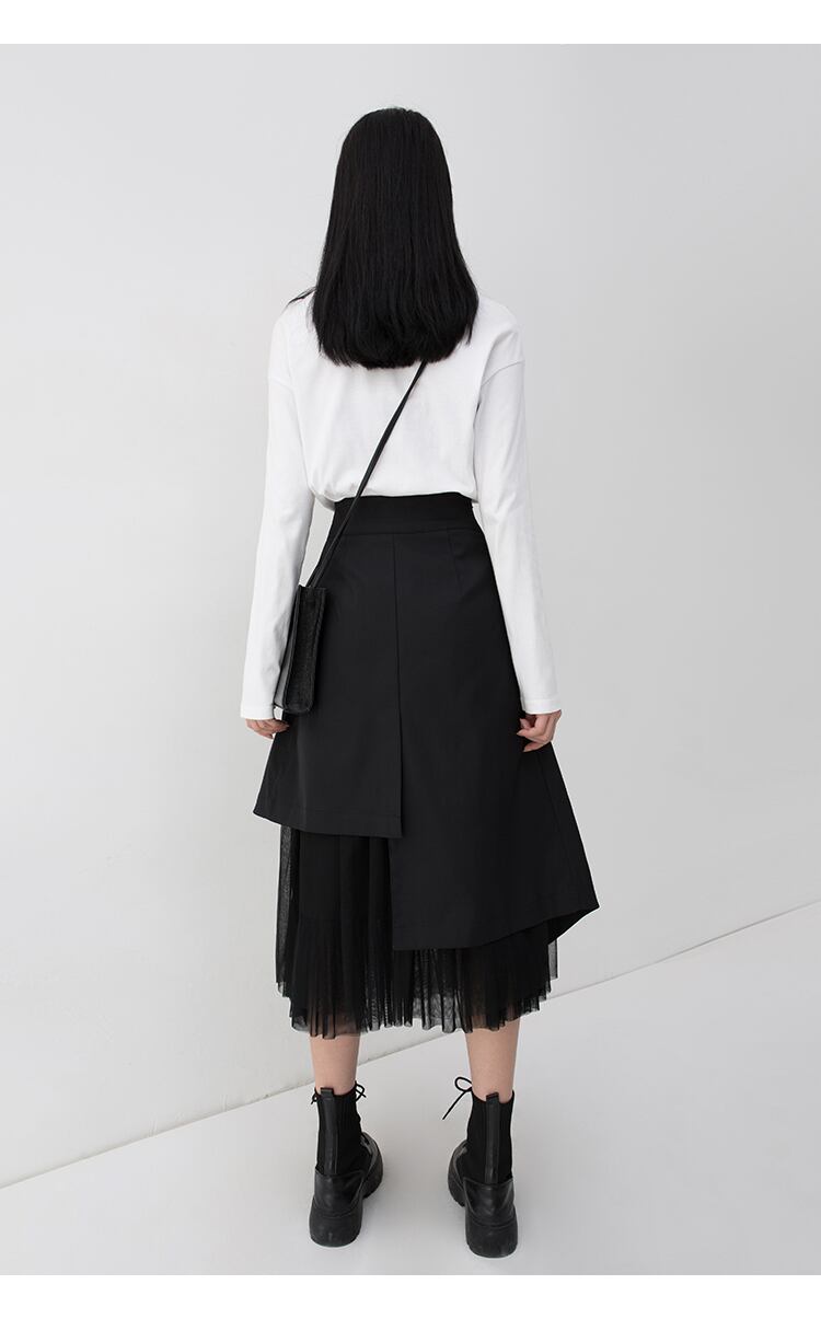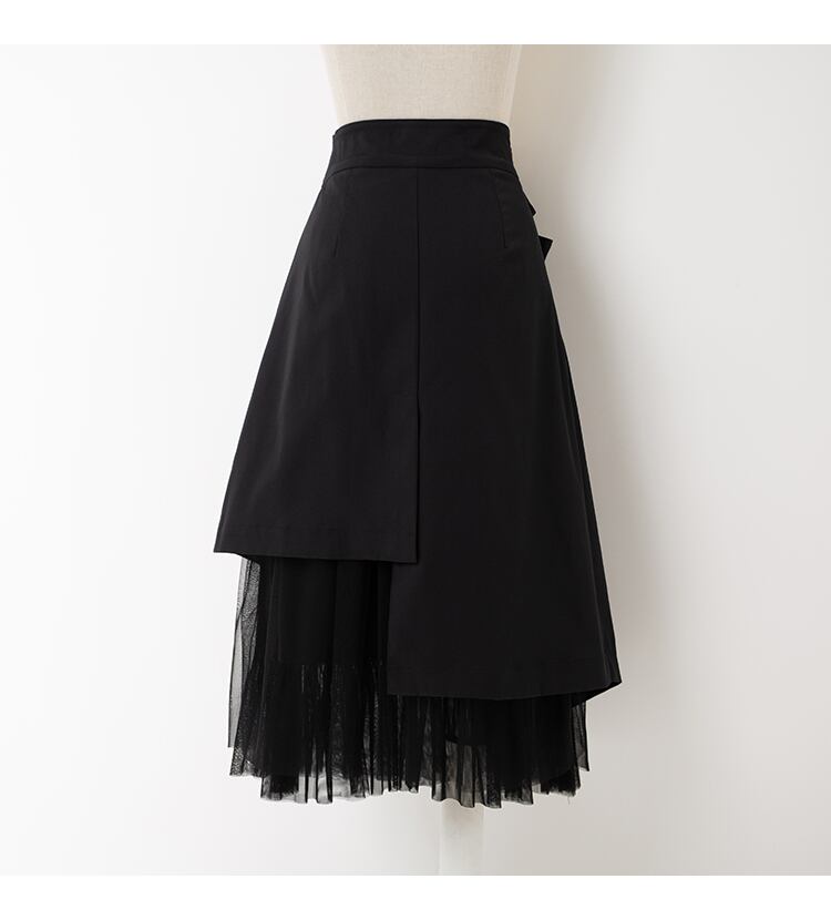 アシンメトリーなデザインが個性的なミモレ丈スカートです。