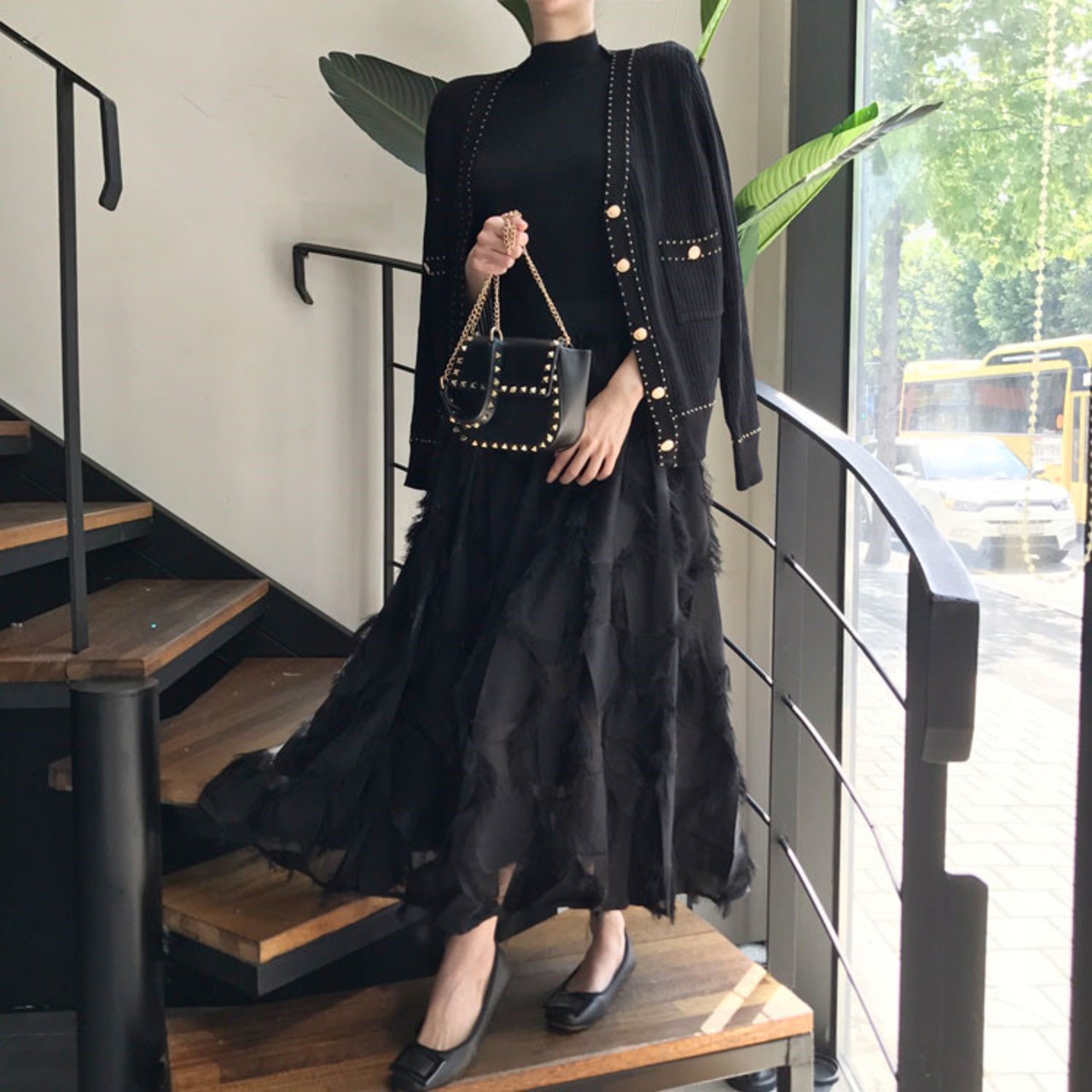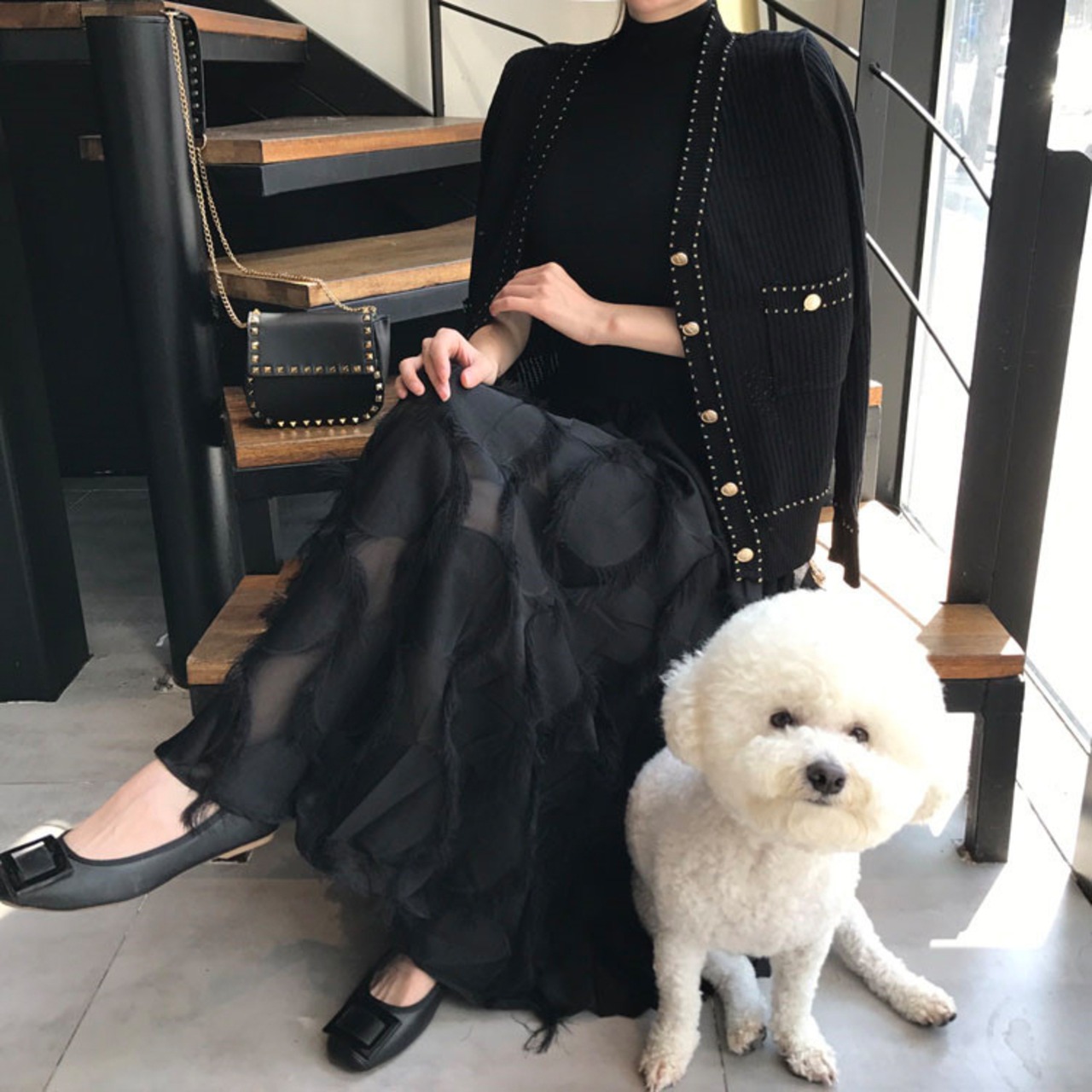 スカートのディテールが大人っぽく、お洒落なセットアップです。